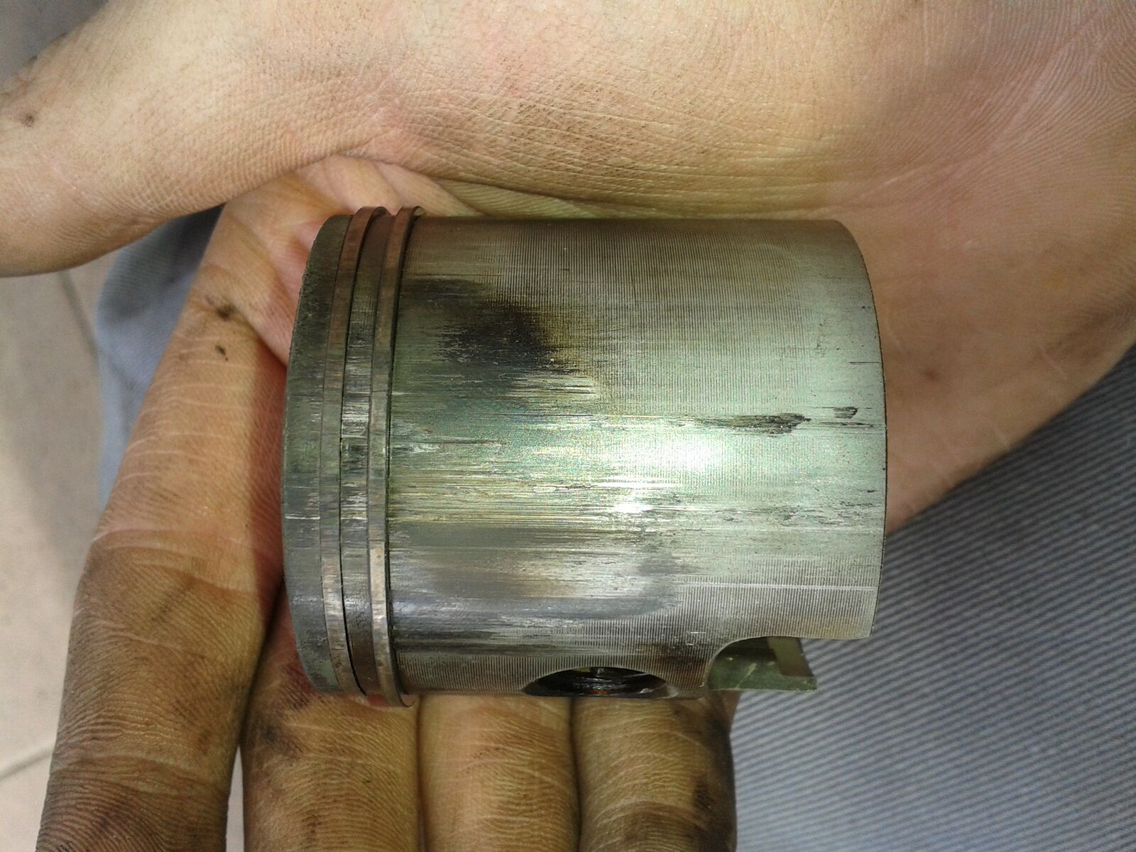 So hier das update. Ich denke mal das es mit einem neuen Kolben nicht getan ist. Der oberste Ring hat sich auch verabschiedet.