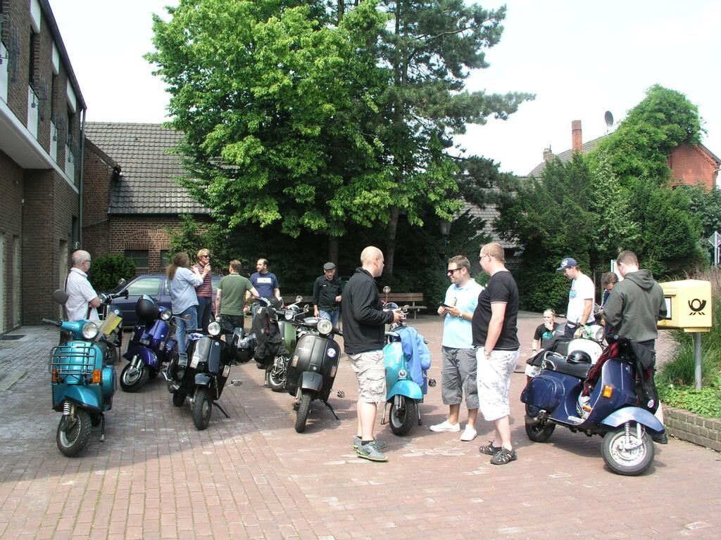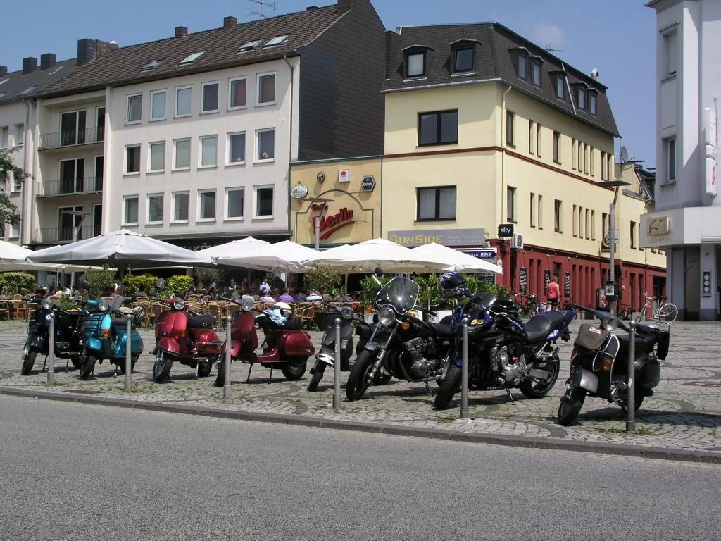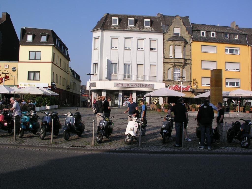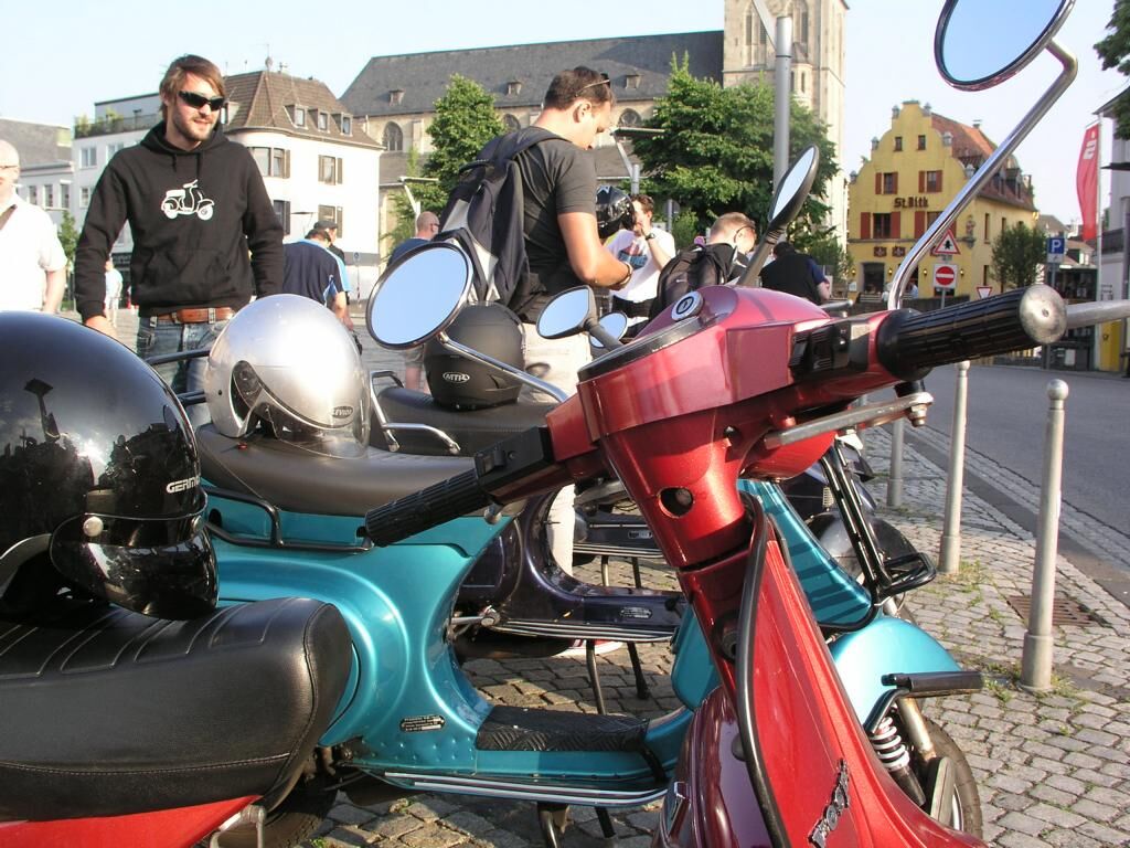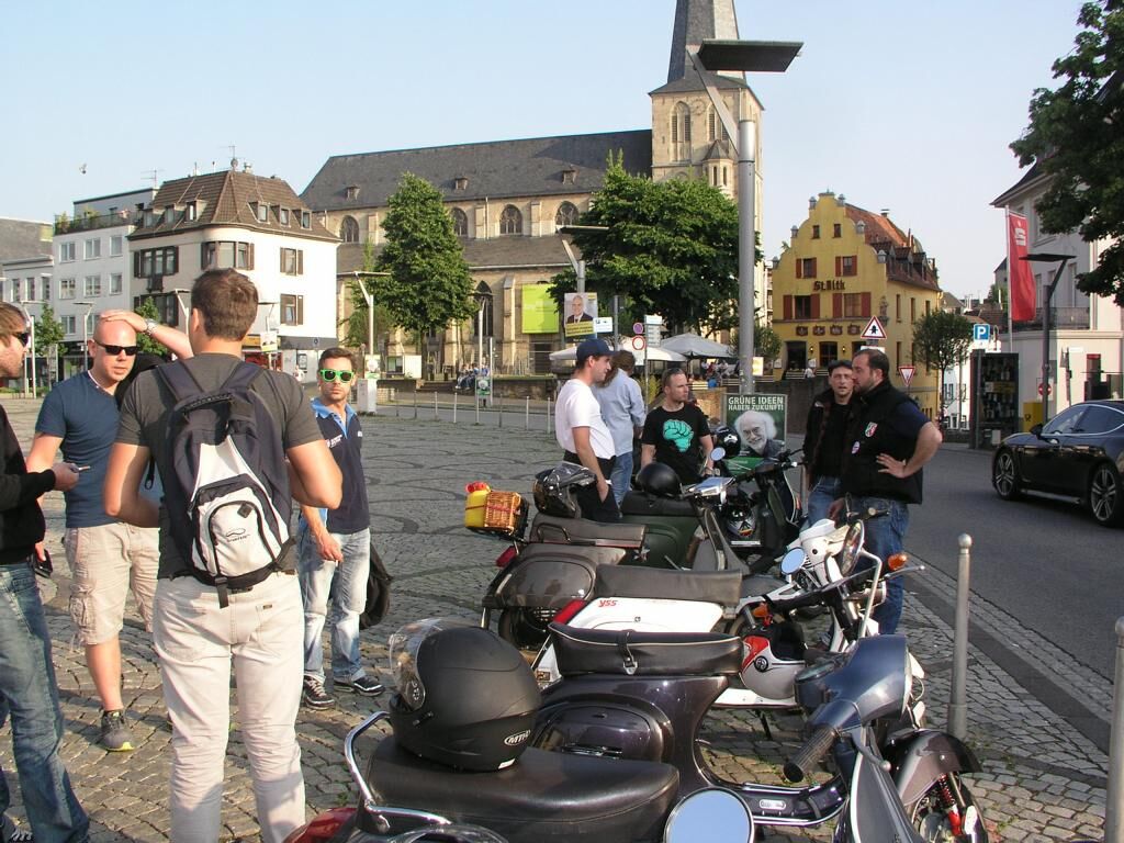 Mönchengladbach, 13:30 Alter Markt, strahlender Himmel. ^Wir schreiben das Jahr 2013, den 06. Juli. Es ist so weit; langsam trudeln alle Vespafahrer ein und nach den üblichen Begrüßungszeremonien können wir endlich Starten. Unser Ziel diesmal: Zum Frikandel essen nach Venlo. Route .