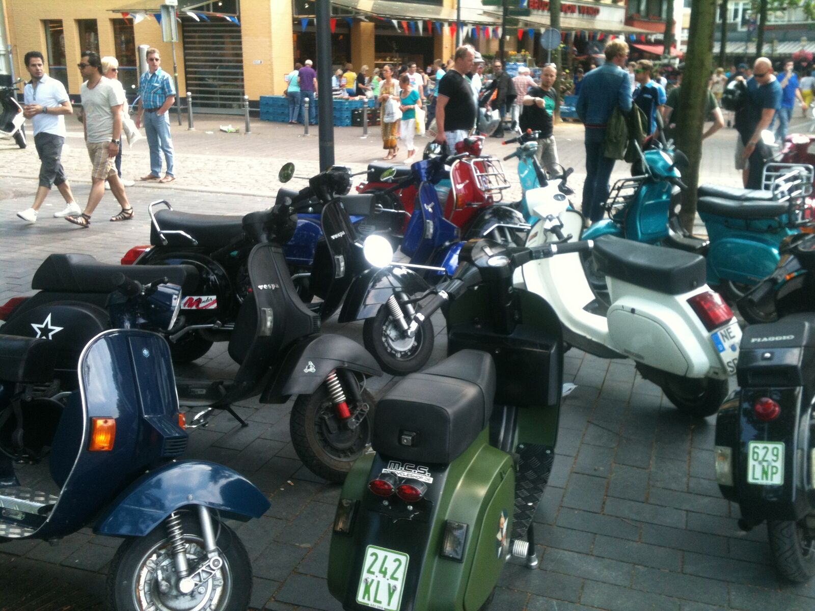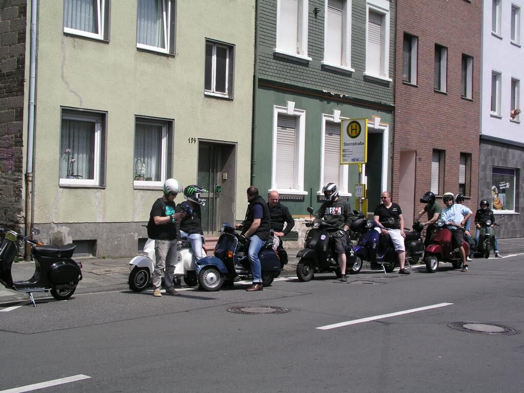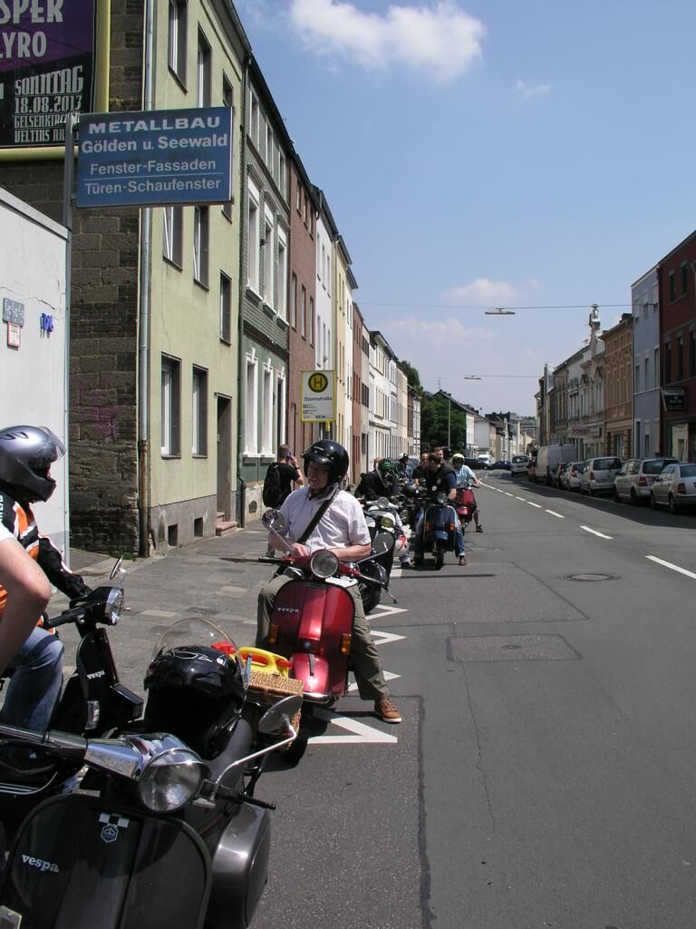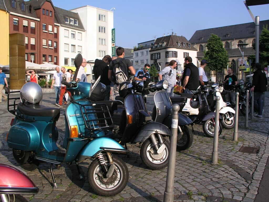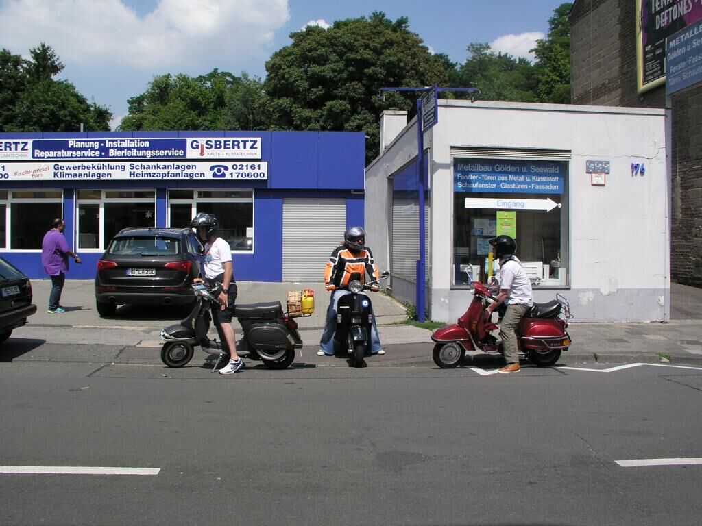 Mönchengladbach, 13:30 Alter Markt, strahlender Himmel. ^Wir schreiben das Jahr 2013, den 06. Juli. Es ist so weit; langsam trudeln alle Vespafahrer ein und nach den üblichen Begrüßungszeremonien können wir endlich Starten. Unser Ziel diesmal: Zum Frikandel essen nach Venlo. Route .