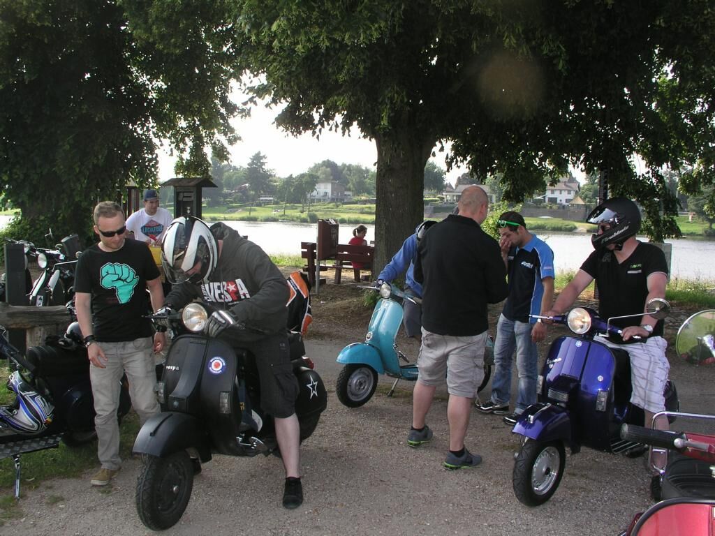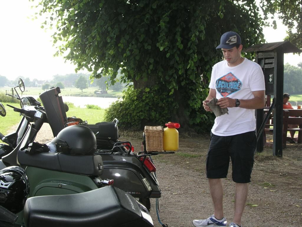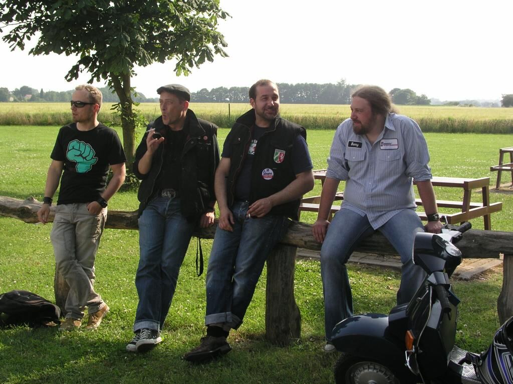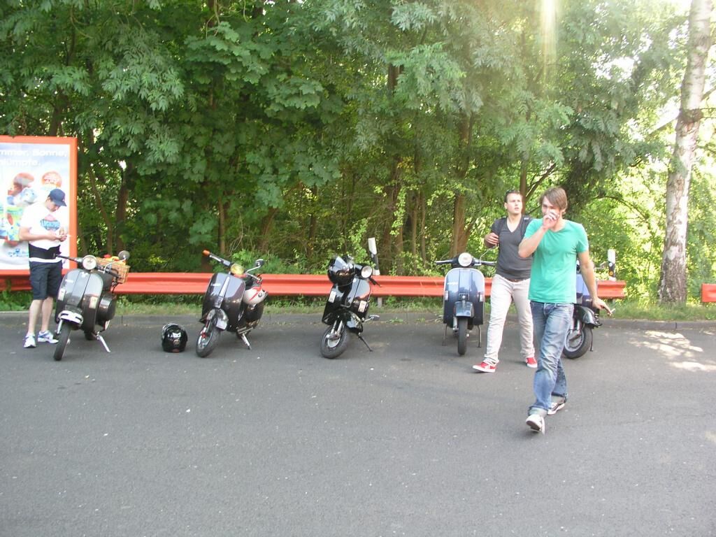 Weiter ging es dann über Beesel nach Schwalmen und dann über die Landstrasse 373; wo wir 2 junge Vespafahrer aus Duisburg aufgegabelt haben, die mit uns dann längst Overheidfeld, Elmpter Bach, Heyen, Brempt und Rüssen wieder zur Tanke nach Schwalmtal und weiter zurück zum Treffpunkt begleitet haben. Hier haben wir uns dann noch in einer gemütlichen Radler-Bier-Runde zusammengesetzt und dann gegen 20:30 die Heimfahrt angetreten.