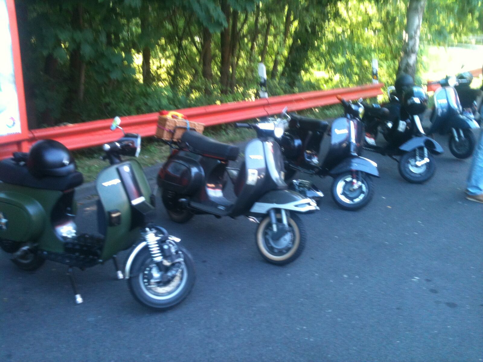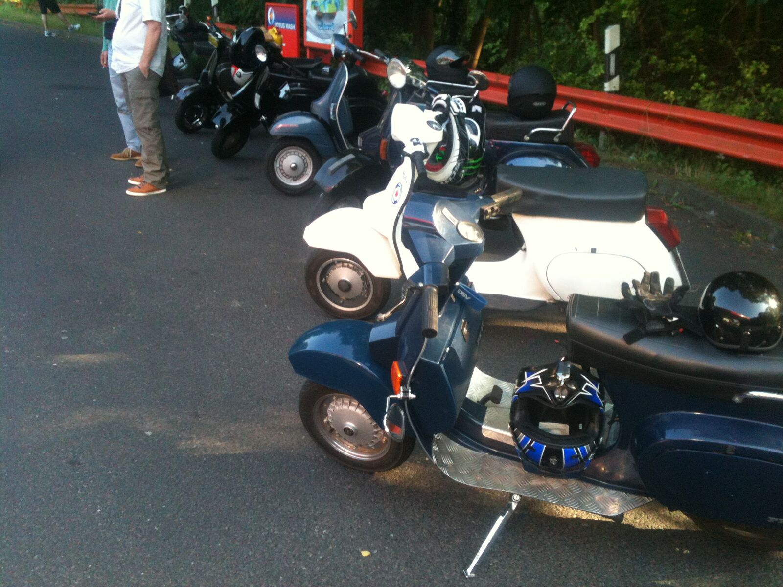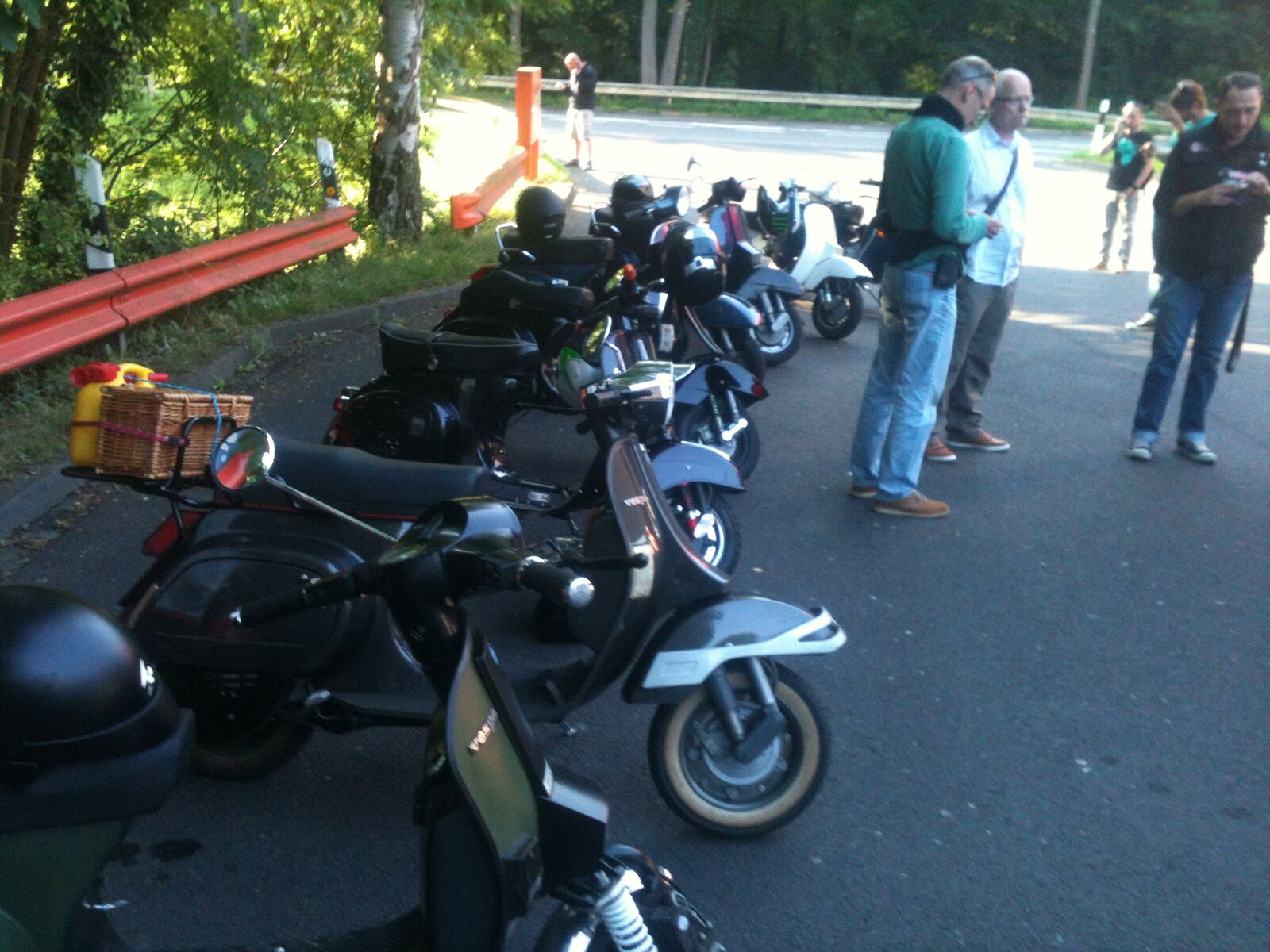 Weiter ging es dann über Beesel nach Schwalmen und dann über die Landstrasse 373; wo wir 2 junge Vespafahrer aus Duisburg aufgegabelt haben, die mit uns dann längst Overheidfeld, Elmpter Bach, Heyen, Brempt und Rüssen wieder zur Tanke nach Schwalmtal und weiter zurück zum Treffpunkt begleitet haben. Hier haben wir uns dann noch in einer gemütlichen Radler-Bier-Runde zusammengesetzt und dann gegen 20:30 die Heimfahrt angetreten.