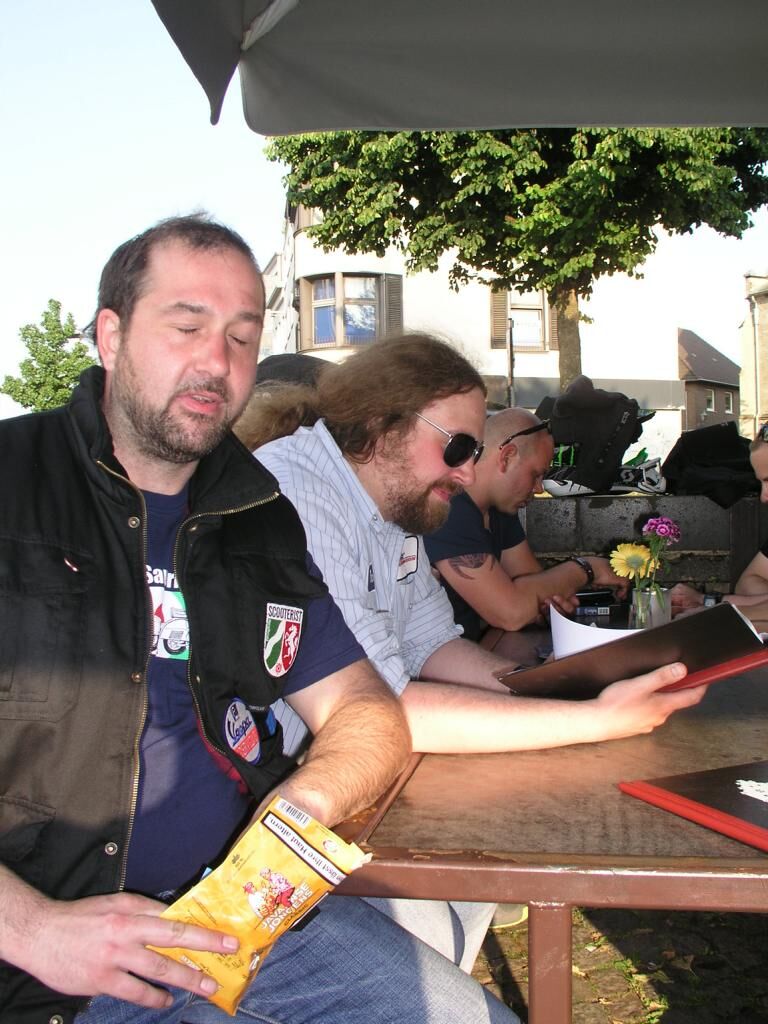 hat, gings weiter durchs Schwalmtal nach Amern und folgten den Ortsteile Lüttelbracht, Alst und Bracht der Gemeinde Brüggen. Über kleine, alte und neue Dörfer schlängeln wir uns unter Brücken fast Ampelfrei bis zu den Stadtteilen von Nettetal: Breyell , Ritzbruch und Leutherheide; abseits der Kreisstrasse zu unserem letzten Zwischenstopp vor Venlo, dem Grenzdorf Leuth; Natürlich mal wieder vor der dortigen Pfarrkirche (watt mutt dat mutt). Mit viel Hunger im Bauch haben wir auch die letzten 7km hinter uns gebracht und uns gegenüber den 2Brüdern an 3 Tischen die wohlverdiente Stärkung gegönnt.