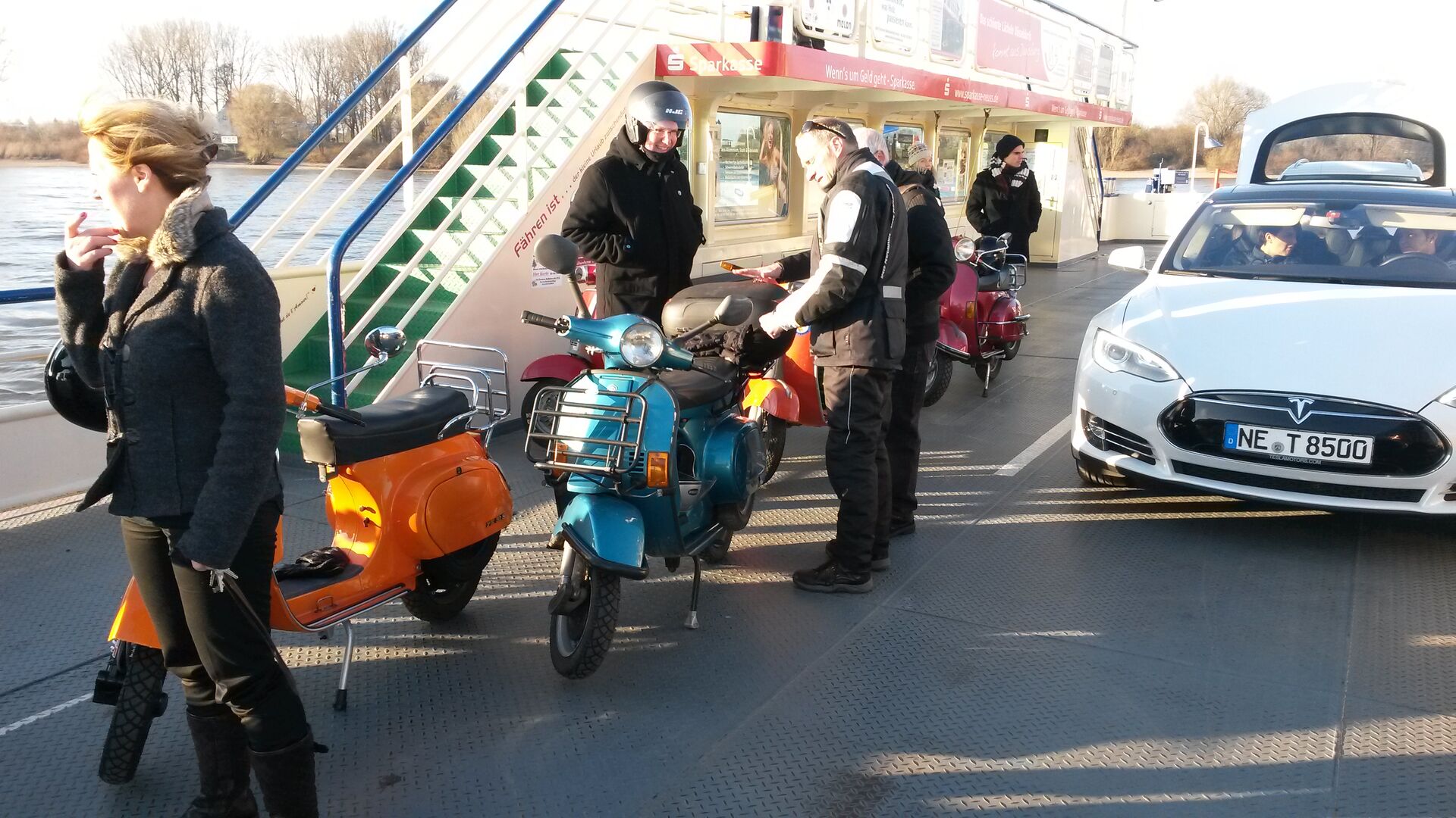 Gemeinsam haben wir uns dann, unserem Rentier André folgend, ampelfrei durch schöne Landschaft und kleine Dörfer auf den Weg zur Fähre gemacht, die schon startklar auf uns gewartet hat.