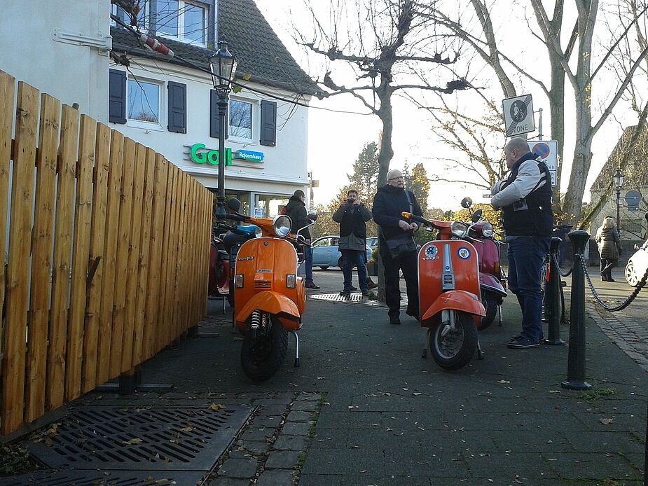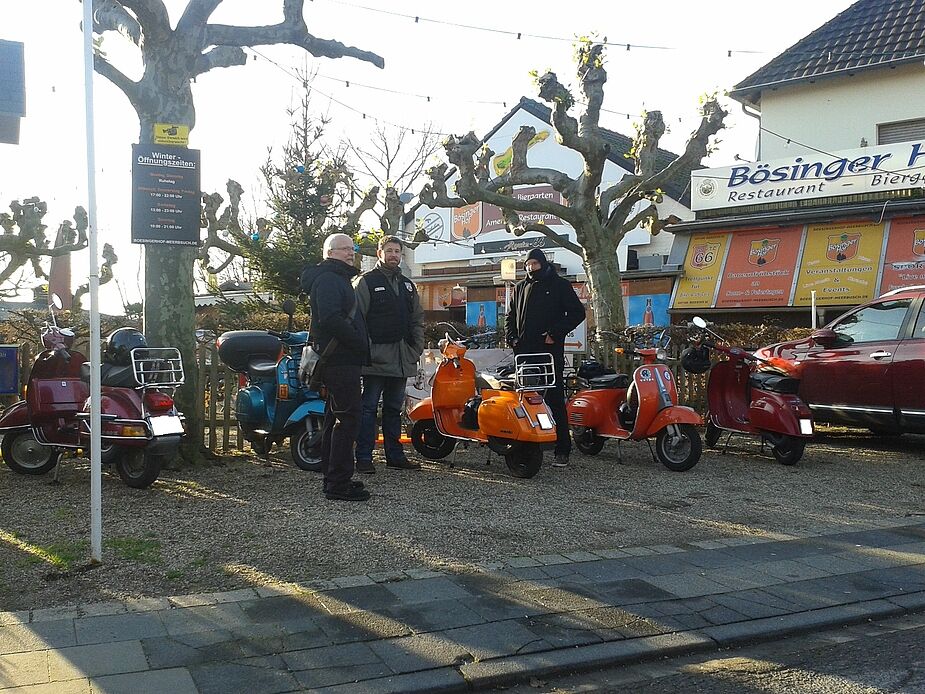 ......... und sich ein weiterer Vespafreund zu uns gesellte. Hallo Henning, jerzlich willkommen im unserem Kreis klatschen-) . So waren wir 3 Nüsser und 2 Krefelder.