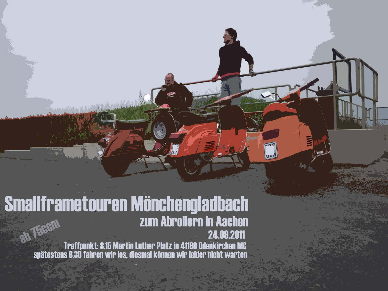 alle vespafahrer sind natürlich herzlich willkommen, nur müssen sich die jungs mit den großen kennzeichen im klaren sein, das es nicht ganz so zügig voran geht.