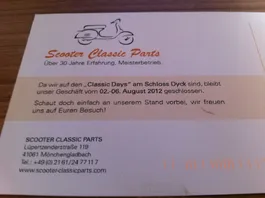 Wer ist denn am wochenende unterwegs? Oder um genauer zu sagen am schloss dyck? Der nette her von Scooter Classic Parts hat dort einen stand aufgebaut, den ich mir aufjedenfall mal anschauen werde.