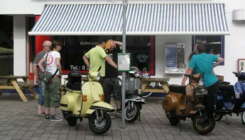 Das ist wohl mehr ein lockeres "get together" auf dem Marktplatz, je mehr Vespen kommen um so schöner ist das Gesamtbild.