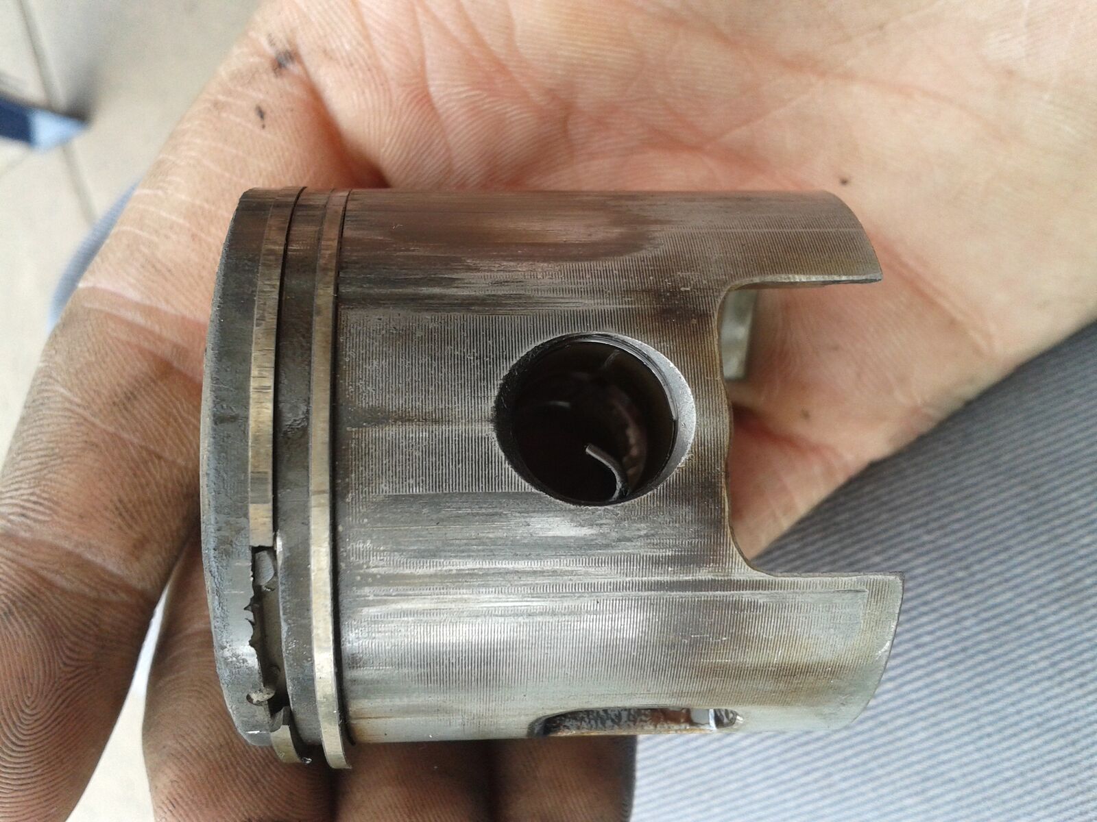 So hier das update. Ich denke mal das es mit einem neuen Kolben nicht getan ist. Der oberste Ring hat sich auch verabschiedet.