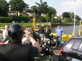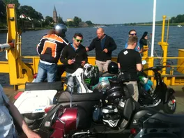 Die Rücktour beginnt, mit einem Polizeiauto im Nacken, über die Brücke, links, entlang der Maas durch Blereck und dann wieder abseits der Hauptstraßen durch landschaftlich noch viel unberührte Natur bis zum kleinen historischen Ort Veer, wo wir dann auch sofort auf die genauso alte Fähre auffahren konnten, die uns sicher ans andere Ufer brachte. Hier dann erstmal nen Päuschen hingelegt und 4 Jungs mussten uns dann leider schon, aus terminlichen Gründen, verlassen.