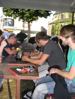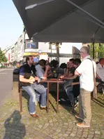 Wenns wetter passt, Donnerstag Abend vielleicht noch ein Abschiedsbierchen oder ein Eis an den Treppen vor dem Neusser Zeughaus, wer Lust hat.