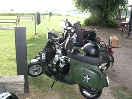 Weiter ging es dann über Beesel nach Schwalmen und dann über die Landstrasse 373; wo wir 2 junge Vespafahrer aus Duisburg aufgegabelt haben, die mit uns dann längst Overheidfeld, Elmpter Bach, Heyen, Brempt und Rüssen wieder zur Tanke nach Schwalmtal und weiter zurück zum Treffpunkt begleitet haben. Hier haben wir uns dann noch in einer gemütlichen Radler-Bier-Runde zusammengesetzt und dann gegen 20:30 die Heimfahrt angetreten.