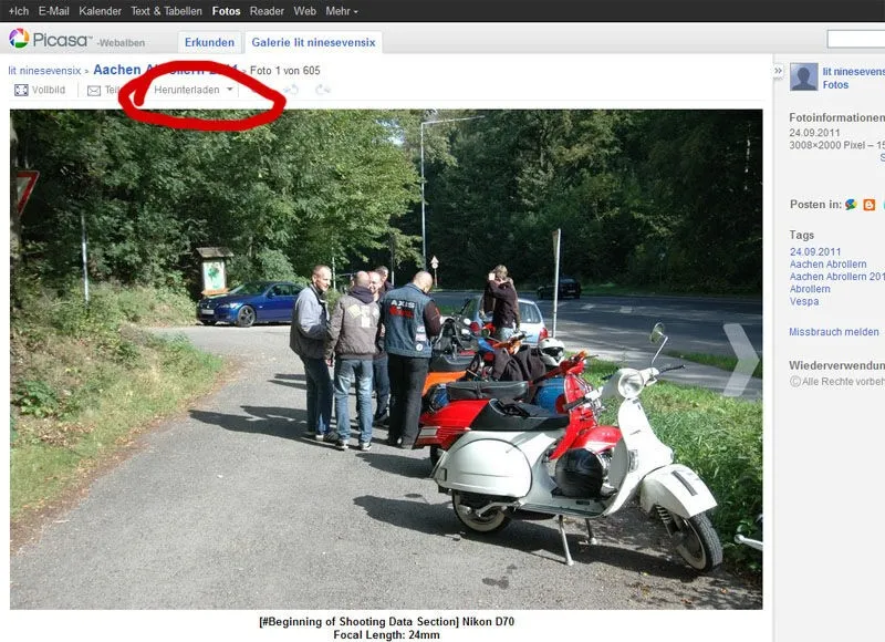 Wer Picasa installiert, kann mit einem Klick das ganzes Album herunterladen.
