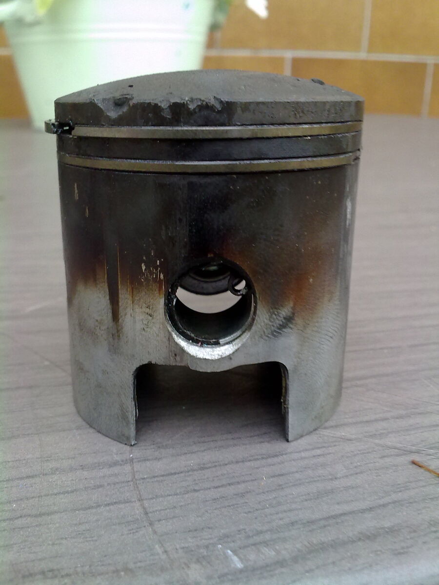 Nix ging mehr. Vespa nach Hause geschleppt und mal kurz nachgeschaut. Zündkerze raus sieht rehbraun aus. An Zylinder gehalten , Zündfunken hat sie. Kopf runtergemacht . Der Kolben ist auf einer seite löcherig und ein minmales Stückchen fehlt.