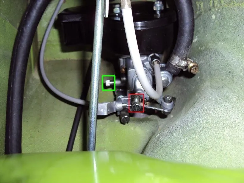 Die Leerlaufgemischseinstellschraube, in deinem Bild jetzt grün markiert, reindrehen und 1,5 Umdrehungen wieder raus.