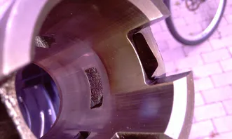 Wie man sieht, ist der Blow-By an den Stellen am stärksten, an denen der Kolben die Öffnung für den Kolbenbolzen hat. Im Zylinder selbst sind im Bereich unter den beiden äußeren Überströmern ebenfalls braune Spuren.