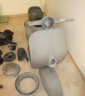 Der Zylinder der dabei war kann mit einer Bohrung von 57mm aber nicht der Originale sein und der Vergaser (Dellorto PHBL24) sicherlich auch nicht.