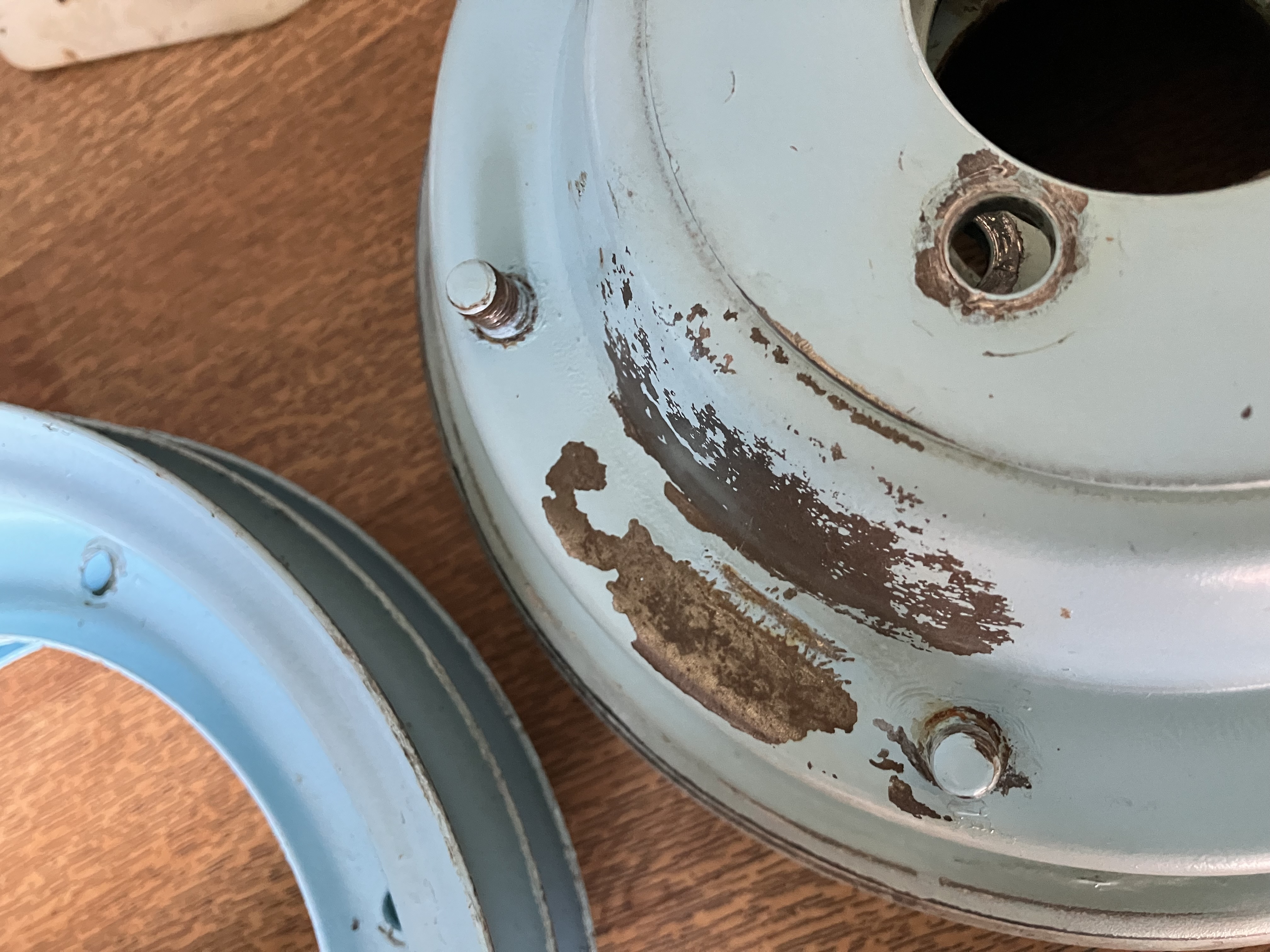 Denke, ich werde das ganze später dann selber mit 2-K-Lack im originalen Farbton lackieren und, weil dass Ergebnis ja wahrscheinlich nicht 100%ig sein wird, ähnlich dem letzten Bild mit „Patina“ versehen. -