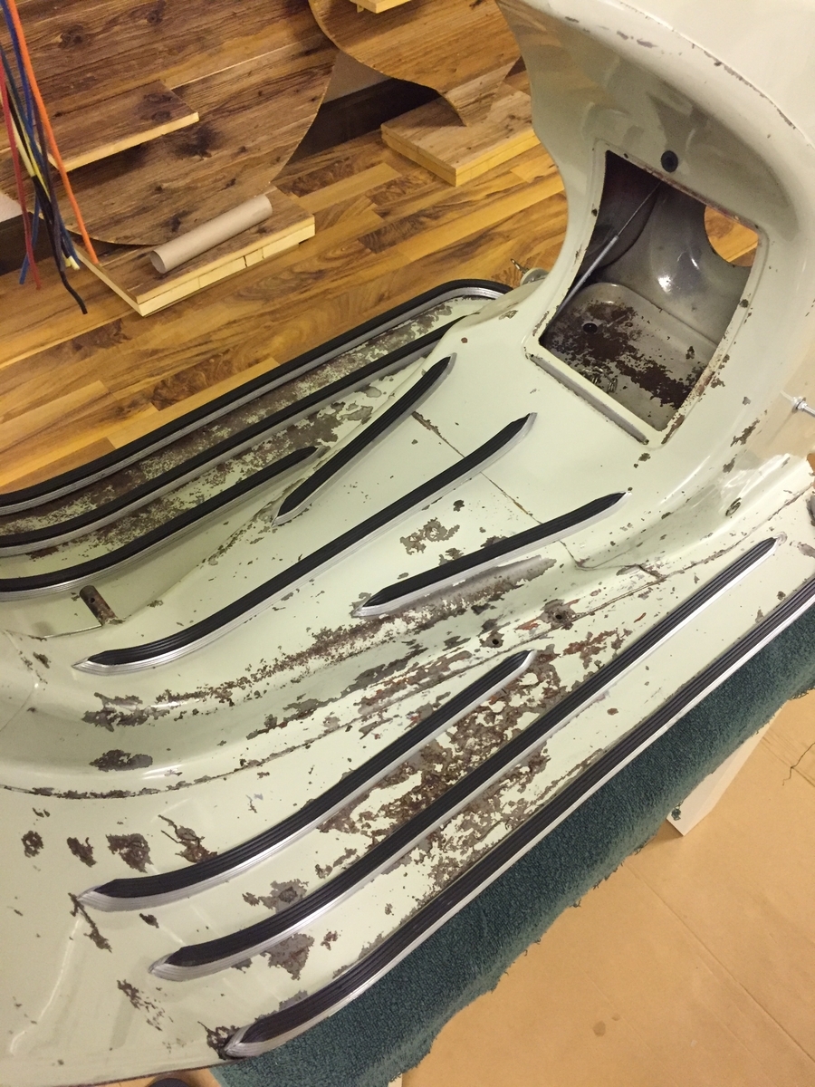 Trittleisten sind drauf, Gummis eingezogen, muss man vorne und hinten anspitzen, haben nämlich keine Endstücke