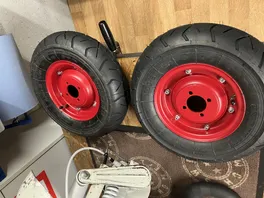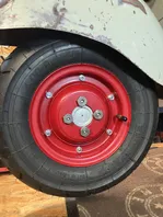 Heute mal die in rubinrot seidenmatt gepulverten Felgen und die 4.00-8“ Reifen montiert, sieht ganz stimmig aus; dann gibt’s als nächstes noch ein kleines Windschild, Teile sind vorbereitet