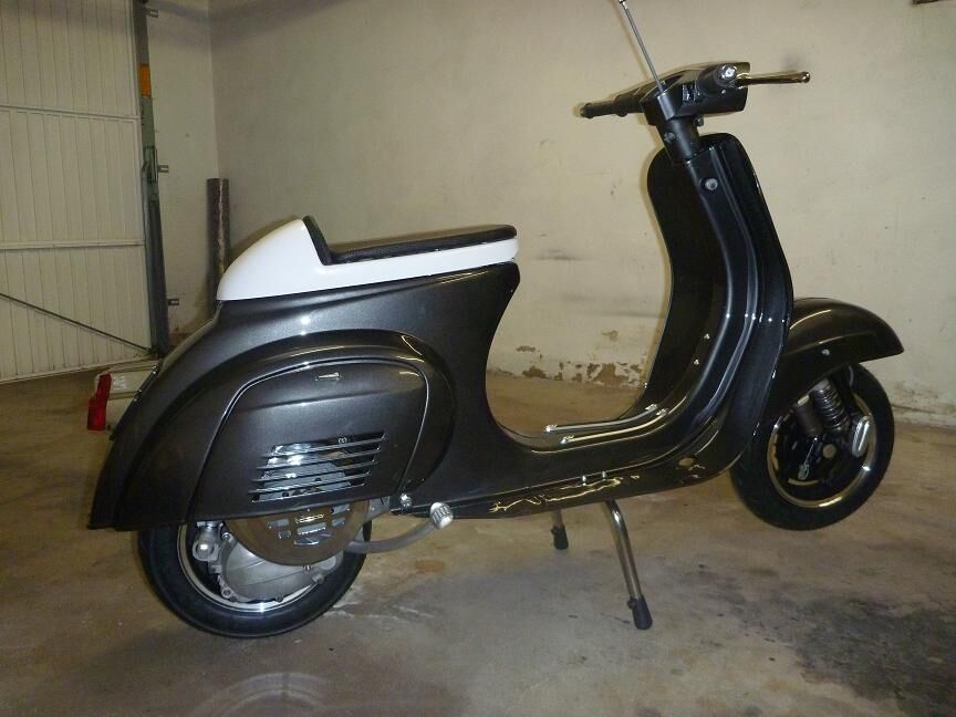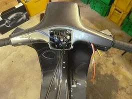 Die Sitzbank hatte ich komplett zerlegt und mein Lackierer hat mir die Öffnung für den Öffnungshebel weg gemacht und die Sitzbank dann in Rollerfarbe lackiert. Elektrik noch bis in den Lenker rein verlegt und geschaut wie viele Teile nun endgültig noch fehlen.