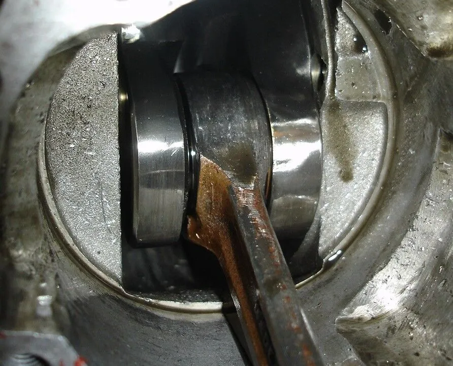 Die linke Kupferscheiben " normalerweise" seitlich des Pleuls ist durch den Zylinder gewandert