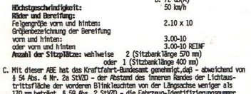 100/90-10 kostet 2o Ocken eintragen beim Tüv Conty Zippy und Twist gingen ohne Streifen.