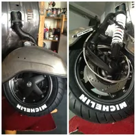 Okay Männer, wieder was geschafft. Chromfelge, hunderter Michelin S1 und neuen Dämpfer hab ich heut mal montiert. Das Felgenbett wird in Felgenfarbe lackiert, zu sehende Stahlflexleitung ist noch ein Provisorium, da kommt was auf Maß dran, denn der Weg zur Pumpe hinterm Beinschild(!) ist lang.