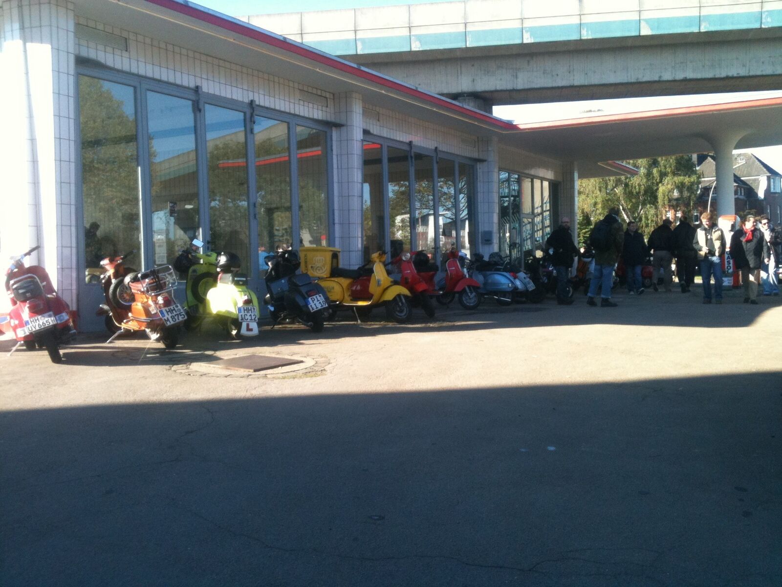 Startpunkt ist die Oldtimer Tankstelle Brandshof, Billhorner Röhrendamm 4 in 20539 Hamburg(direkt hinter dem Großmarkt kurz vor den Elbbrücken, die in diesem Jahr auch der Endpunkt des Anrollerns war.