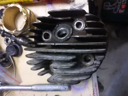 Bis jetzt habe ich einen 75 DR Formula verbaut. Vergaser gereinigt 76 HD dazu, Bosch W4AC, Zündkerze naja Standard zeug eben. Der alte Zylinder war auch ein 75 ger, jedoch stand keine Marke drauf, der hatte einen Klemmer weil nur Benzin getankt wurde (ohne Öl): Was mich noch wundert ist das die Kupplung schwer zu ziehen geht, ich schätze das der Vorbesitzer verstärkte Federn eingebaut hat.