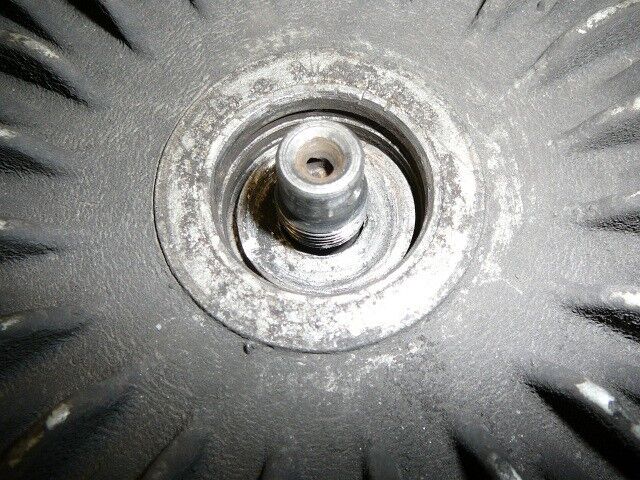 Jetzt habe ich die Zentralmutter schon runter aber die darunterliegende Distanzscheibe hat sich offensichtlich verformt und will jetzt nicht über das Gewinde der Antriebswelle. Ich habe auch schon versucht mit meinem Proxxon das Ding anzuschleifen aber mein billiger Zubehörschleifkopf war nach 10 Sekunden kaputt und an der Scheibe sieht man gerade mal eine Polierstelle.
