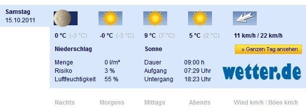 Zu diesem Termin sieht der Wetterbericht sehr gut aus. Der Herbst soll wieder mit wärmeren Temperaturen zurückkommen.