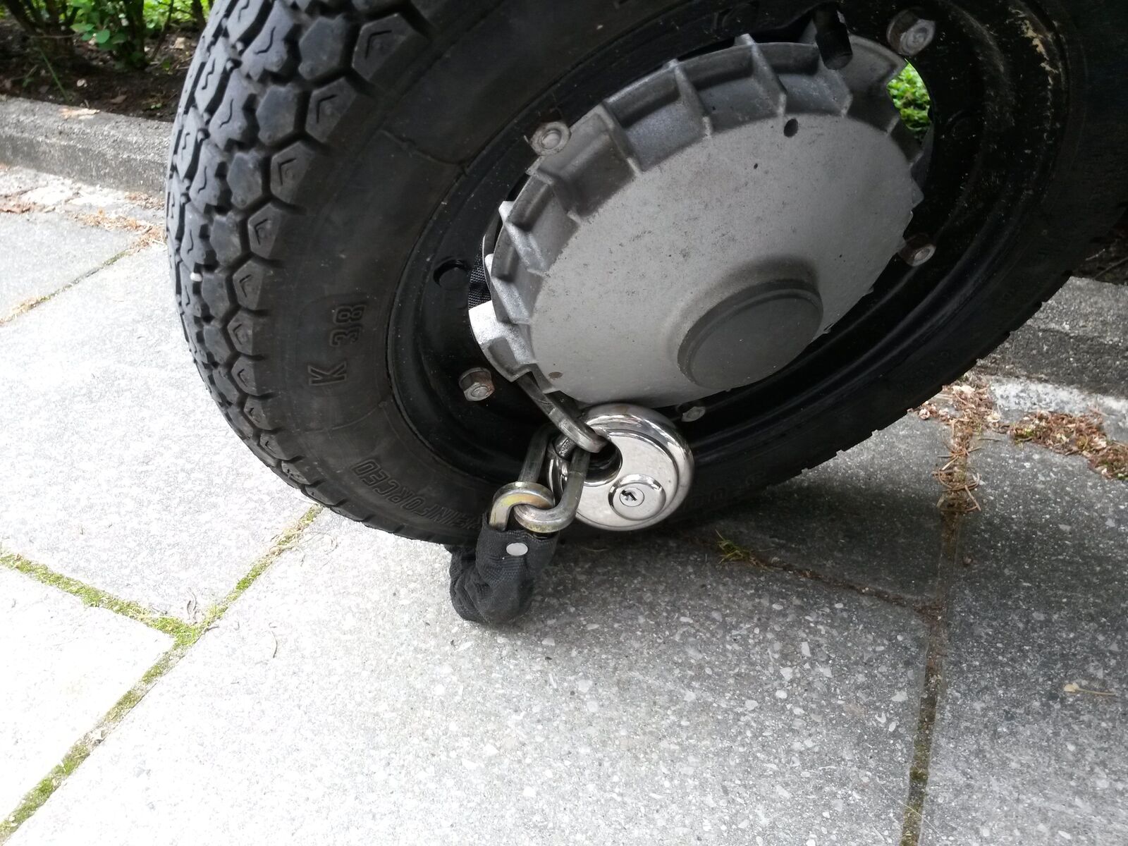 • Alles andere ist rausgeschmissenes Geld, mit zwei Mann kann man die abgeschlossene Vespa in ein Auto heben, Kabelschlösser sind lt. Test in Minuten geknackt.