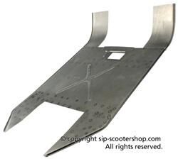 Heute war es soweit. Ich habe eben meinen Rahmen vom Strahlen abgeholt. Das Ergebnis ist super. Nur sieht man jetzt auch was der Vorbesitzer für ein Idiot war. Er hat im Bereich des Trittbleches einfach von oben zwei zugeschnittene Bleche links und rechts eingeschweiß und mit mind. 10 kg Spachtelmasse zugekleistert. Ich werde wohl nicht drum herum kommen das komplette Beinschild zu erneuern. Das Reparaturblech, welches ich hier schon mal mit ein paar Leuten diskutiert habe, werde ich wohl nehmen müssen. Mein Karosseriebauer sagte mir heute, es wäre einfacher diese Blech zu nehmen und die fehlenden Schlitze und Löscher hinein zu machen, als ein kurzes Reparaturblech einzuschweißen. Ich bin mal gespannt. Hier noch die Bilder von dem Rahmen.