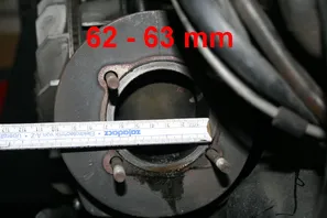 Dann hab ich eben noch den Zylinderkopf abgenommen und gemessen: Durchmesser des Zylinders 62-63mm.