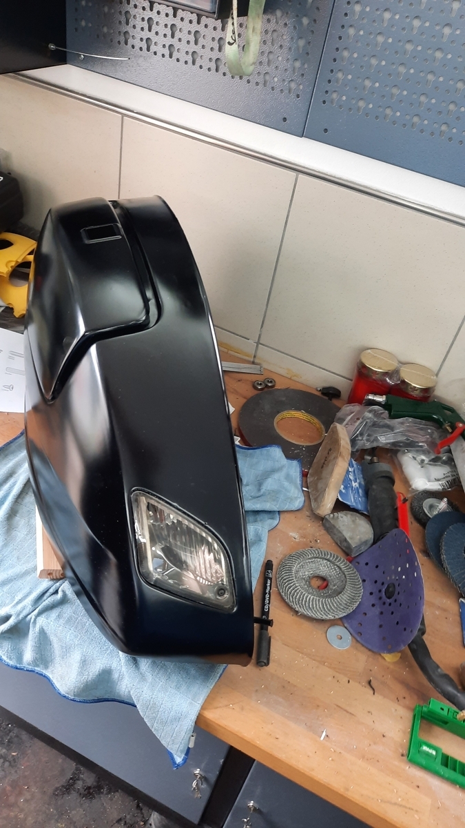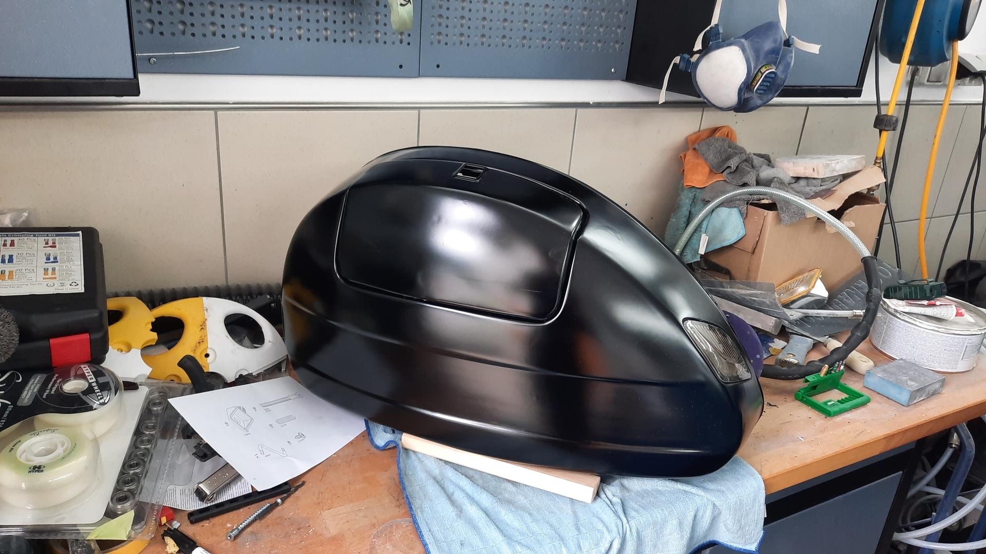 So Farbe ist mal am Linken Deckel drauf, nur noch fertig zusammenbauen, den Blinker muss ich leider nochmals folieren da sich die Folie stellenweise ablöst.