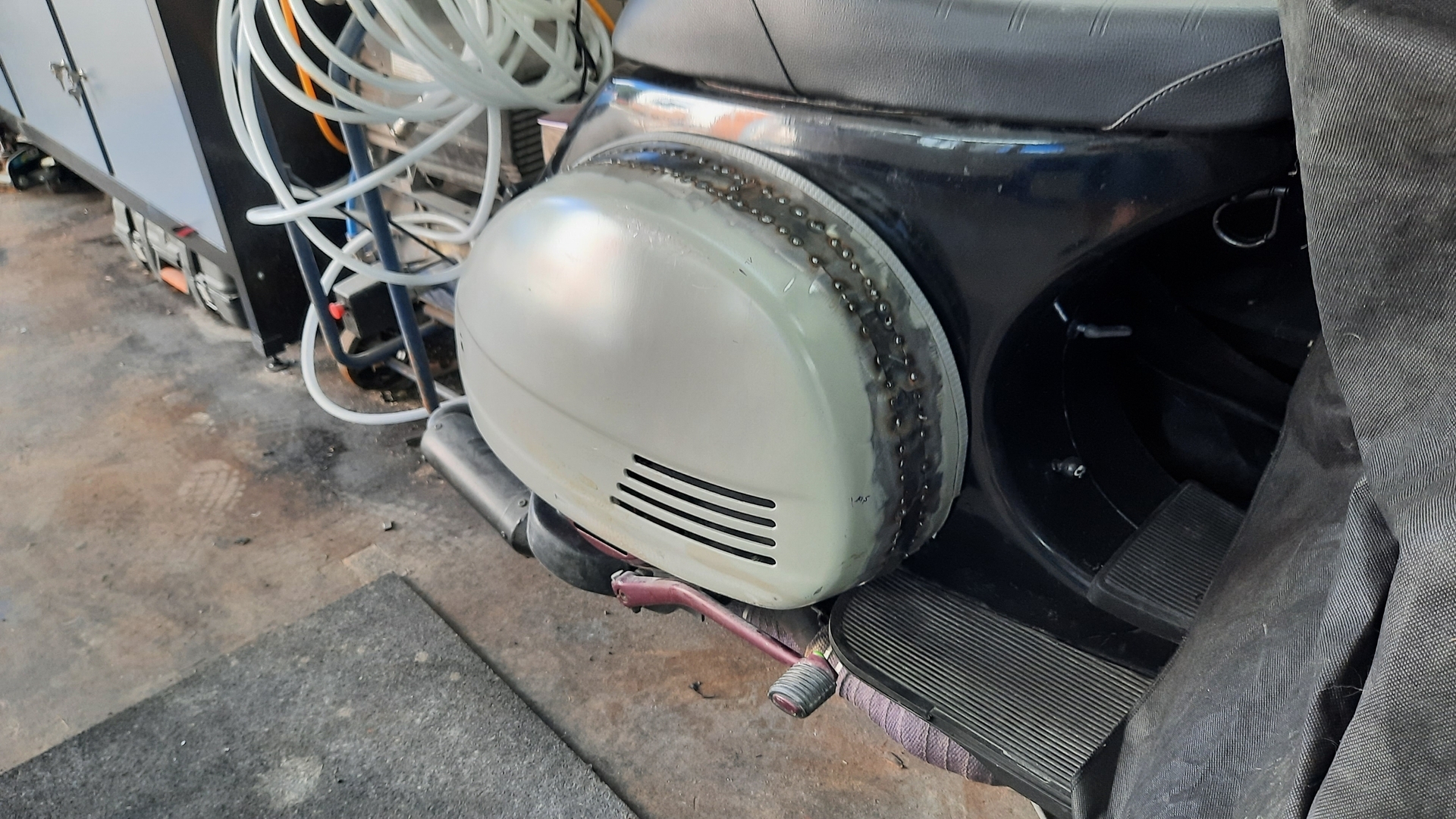 Damit man den abnehmbaren Gepäckfachdeckel überhaupt montieren kann muss am Rahmen ein wenig modifiziert werden. Den aufgeschweissten Rahmen um den Spannungsreger und Blinkerrelais musste ich unten ein wenig kürzen.