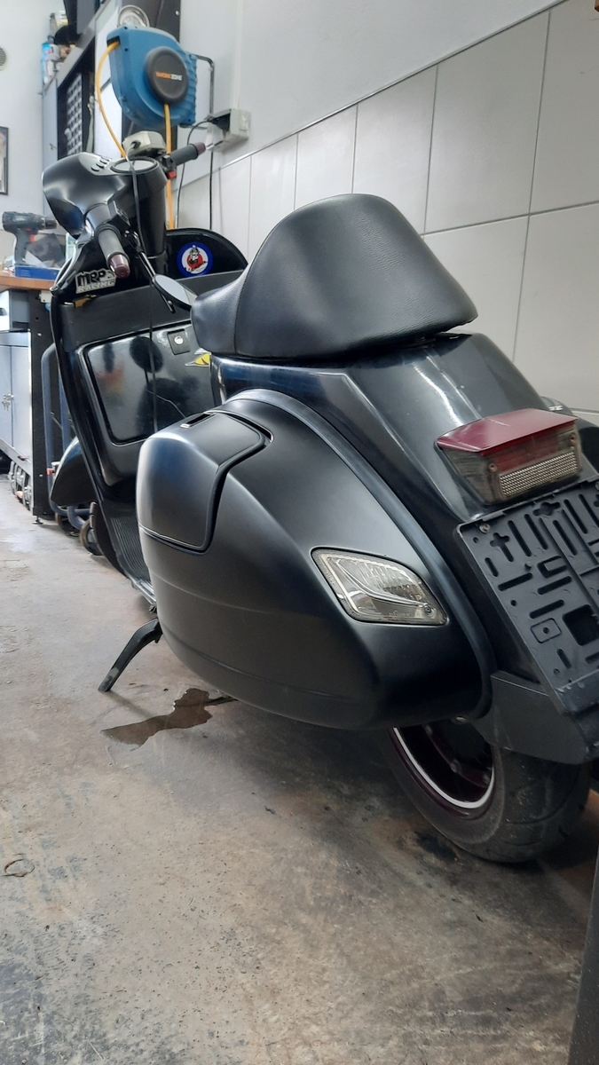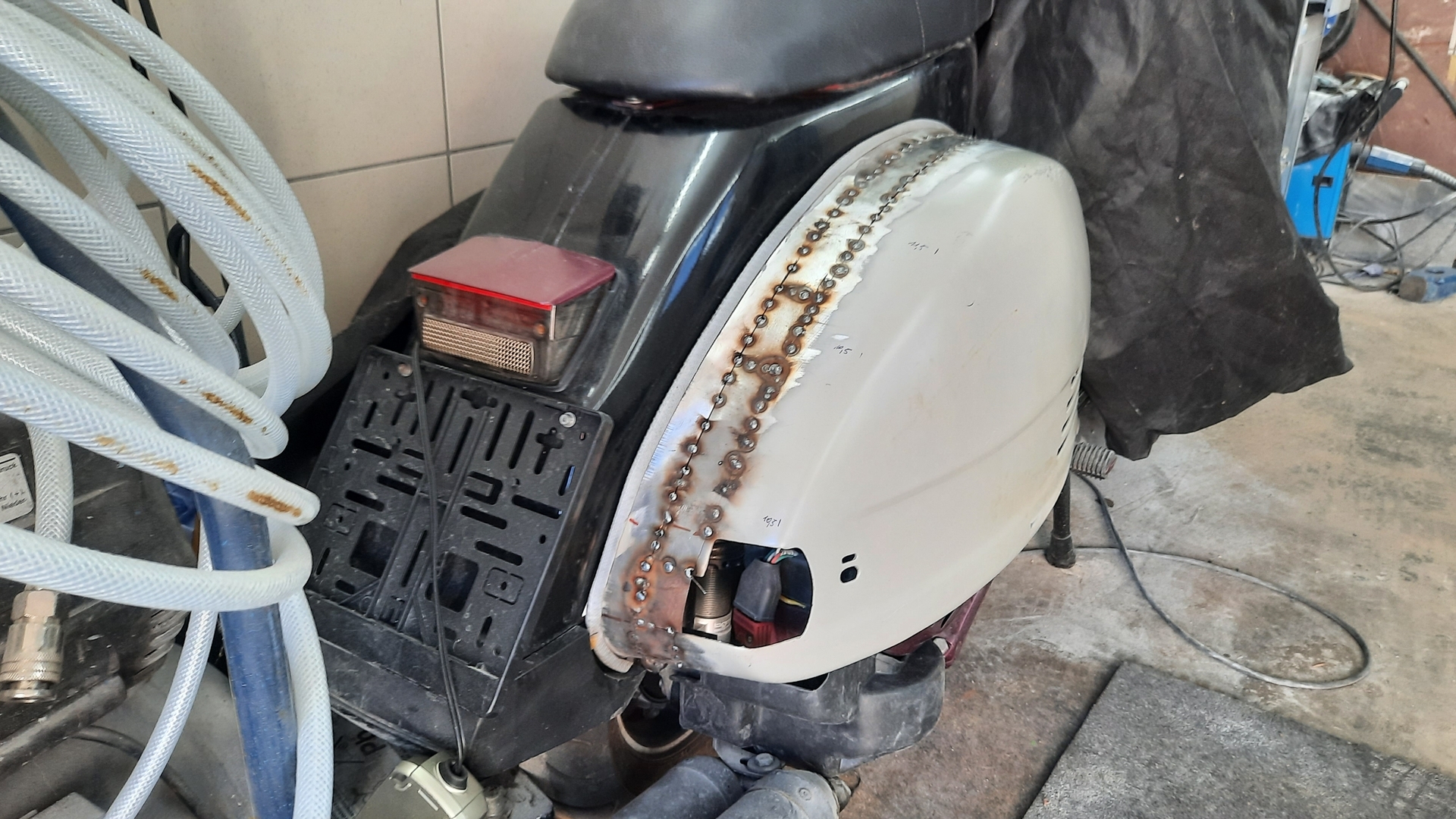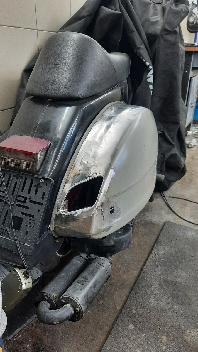 Damit man den abnehmbaren Gepäckfachdeckel überhaupt montieren kann muss am Rahmen ein wenig modifiziert werden. Den aufgeschweissten Rahmen um den Spannungsreger und Blinkerrelais musste ich unten ein wenig kürzen.