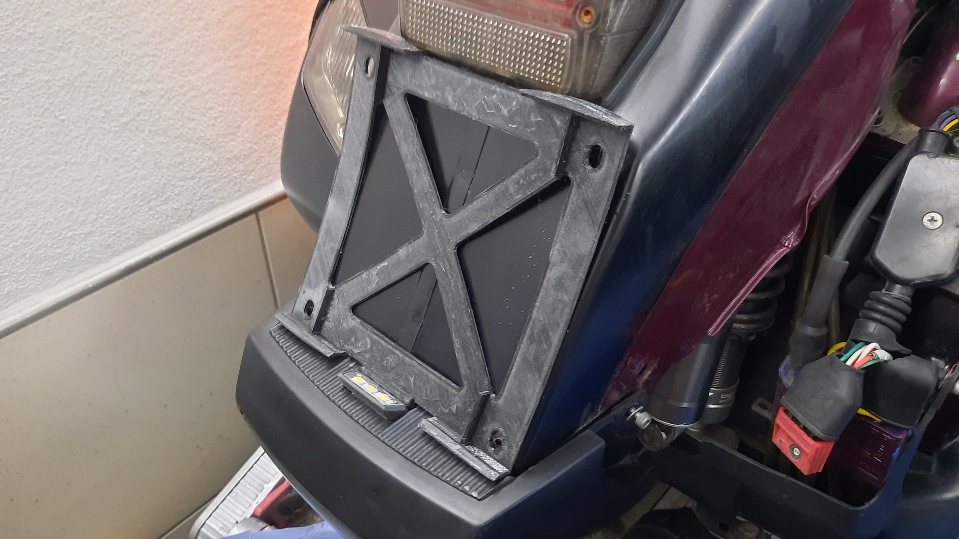 Danach passt leider der originale PX Batteriehalter nicht mehr. Somit habe ich mir schnell alles am Roller ausgemessen und dann gleich einen neuen Halter für Batterie konstruiert, dieser ist jetzt kleiner da eine Gel Batterie verbaut ist, und danach gleich aus PETG 3D gedruckt.