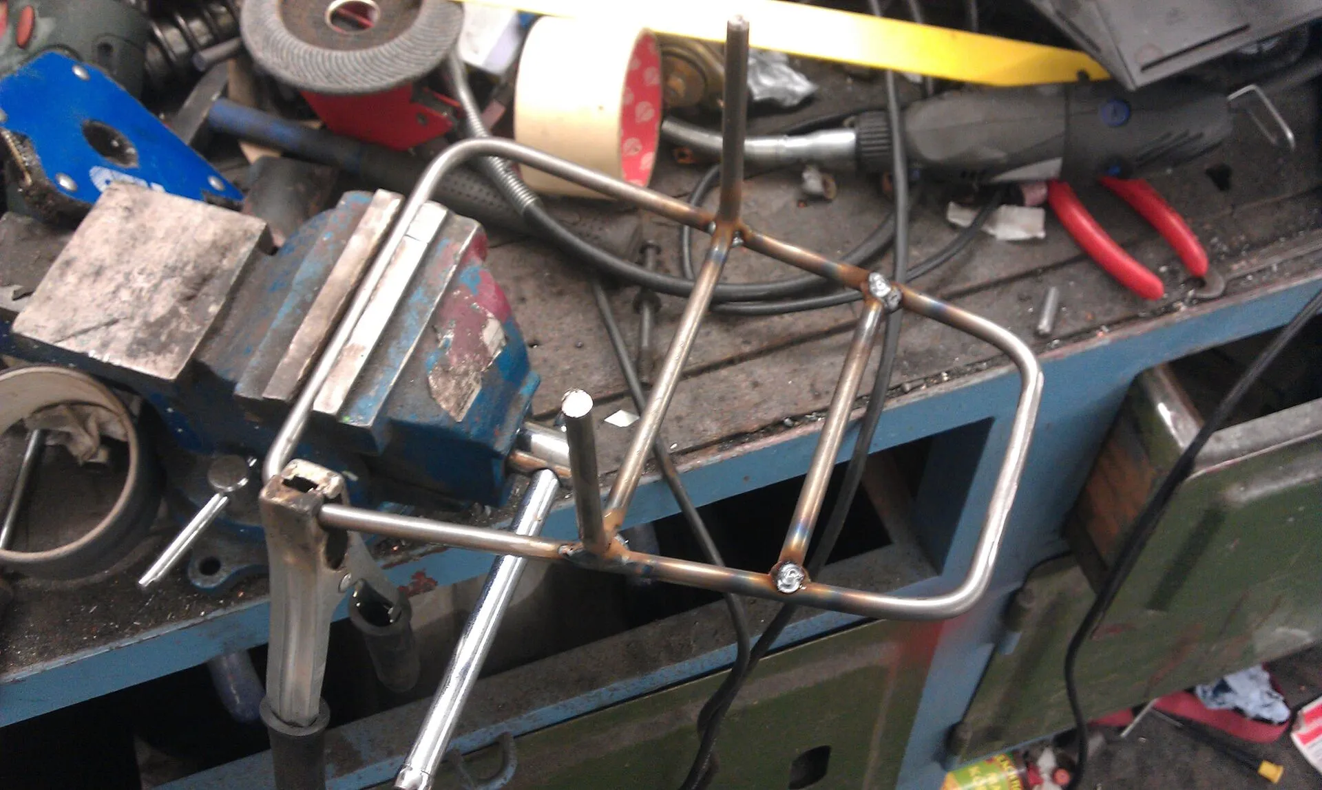 -Alt/Lusso Zwittergabel 4cm gekürzt mit ScootRS Grimeca Scheibenbremse vollhydraulisch (SKR Stern mit geändertem Tachoantrieb;SIP Bremspumpe und ABM Stahlflex)