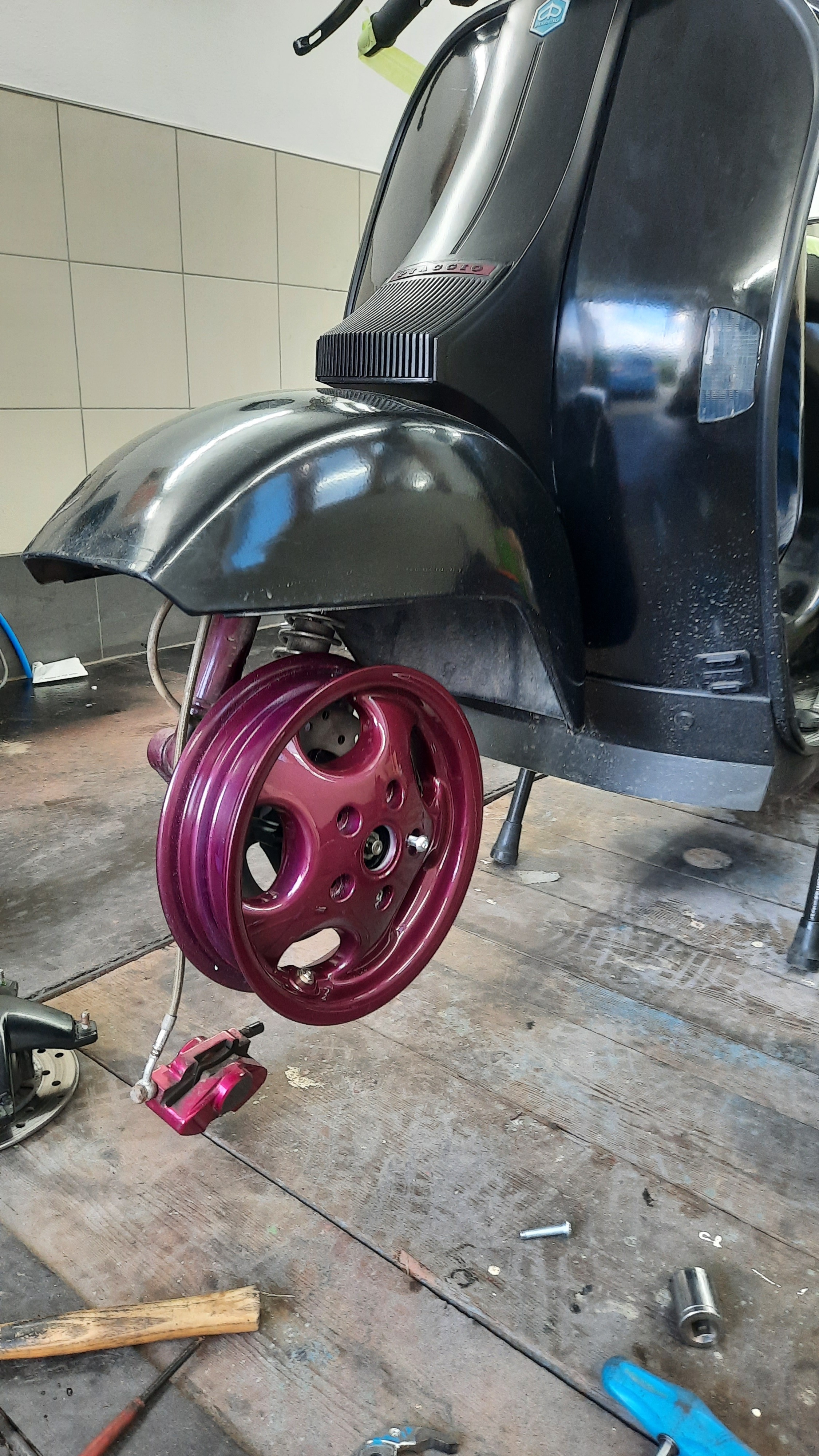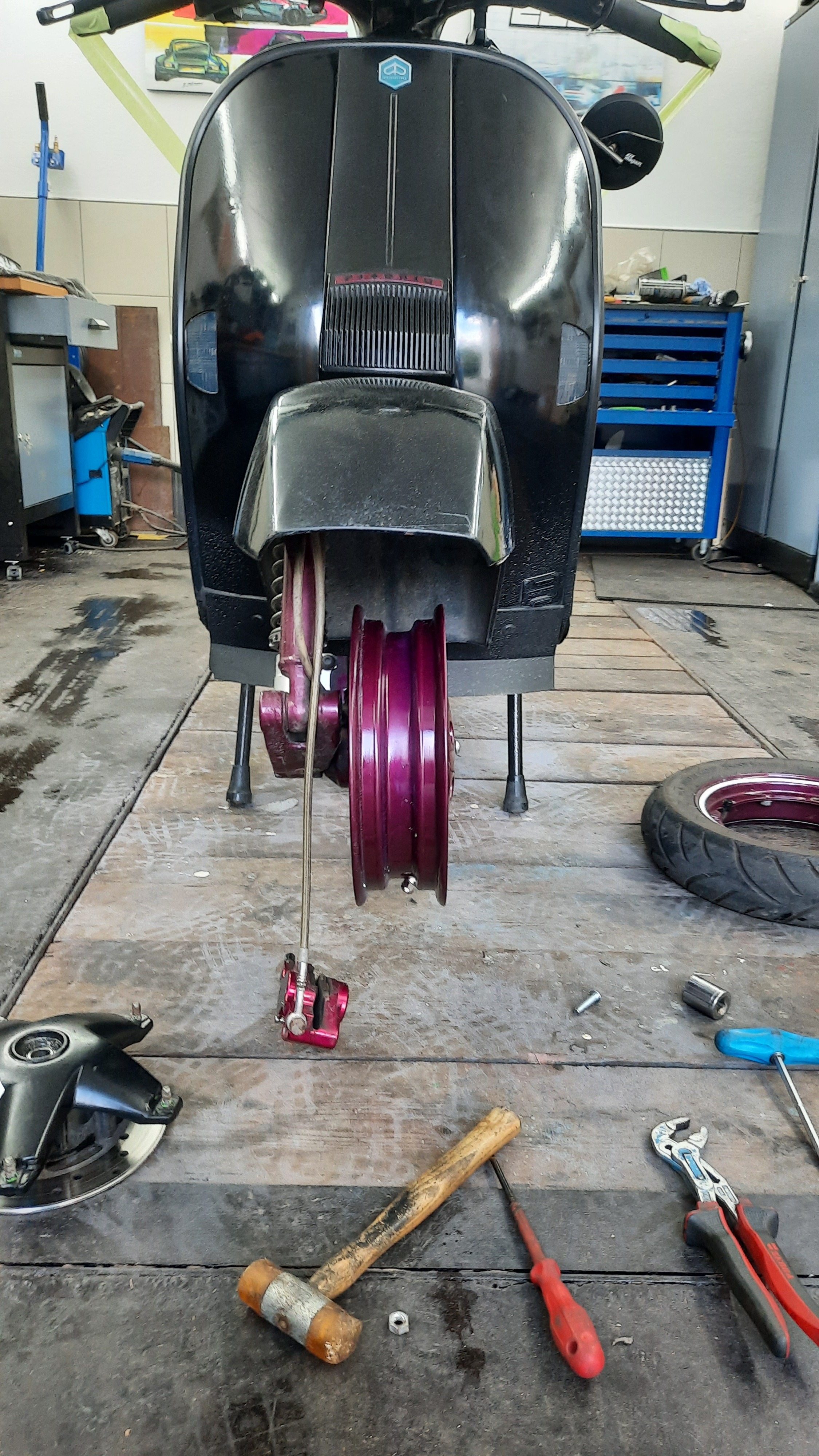 Vorne wurde der SKR Stern gegen die Alufelge der ET4 getauscht, sollte eigentlich eine einfache Nummer werden war aber wie so oft ziemlich aufwändig da hier eingetlich nichts auf Anhieb passte.