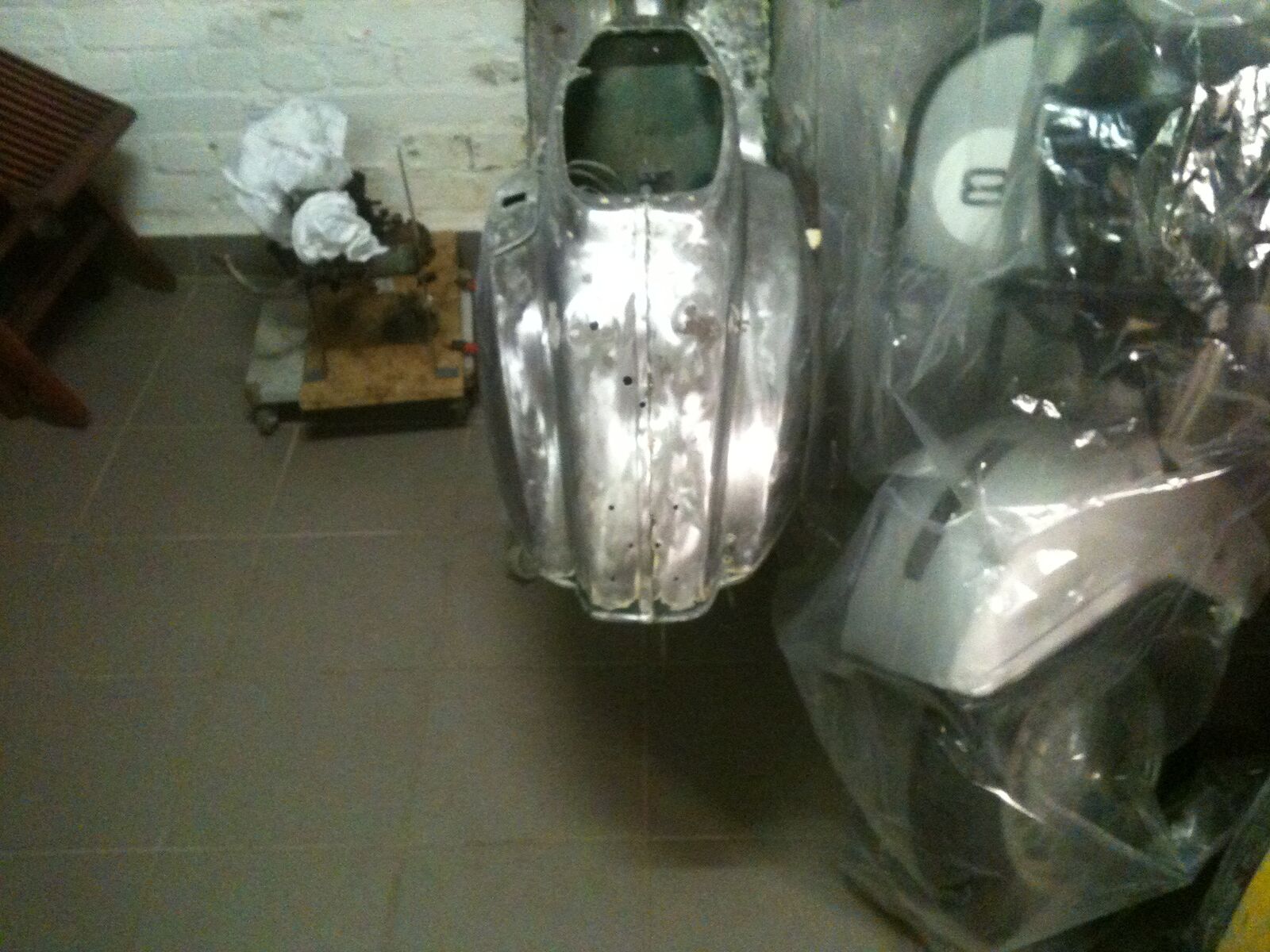 Der Winter steht vor der Tür und so wurde wieder Arbeit ins Haus geholt. Über den Umpfang der Arbeiten bin ich mir noch nicht sicher bzw. klar. Ggf. wird der Lack neu Aufgebaut oder nur überarbeitet. Im Trittblech ist ein Loch. Hier kann Entweder ein Stück eingeschweißt werden oder das Bodenblech muss kompl. neu - mal sehen. Der Motor bleibt zunächst wie er ist. Ist ausgestattet mit DR 85 und 19er Gaser. Auspuff ist noch Original, da wird bzw. muss wohl noch etwas passieren, jedoch weiß ich noch nicht wohin die Reise geht. Der Motor dreht, läuft jedoch nicht. Hier ist also auch nocht etwas zu tun.