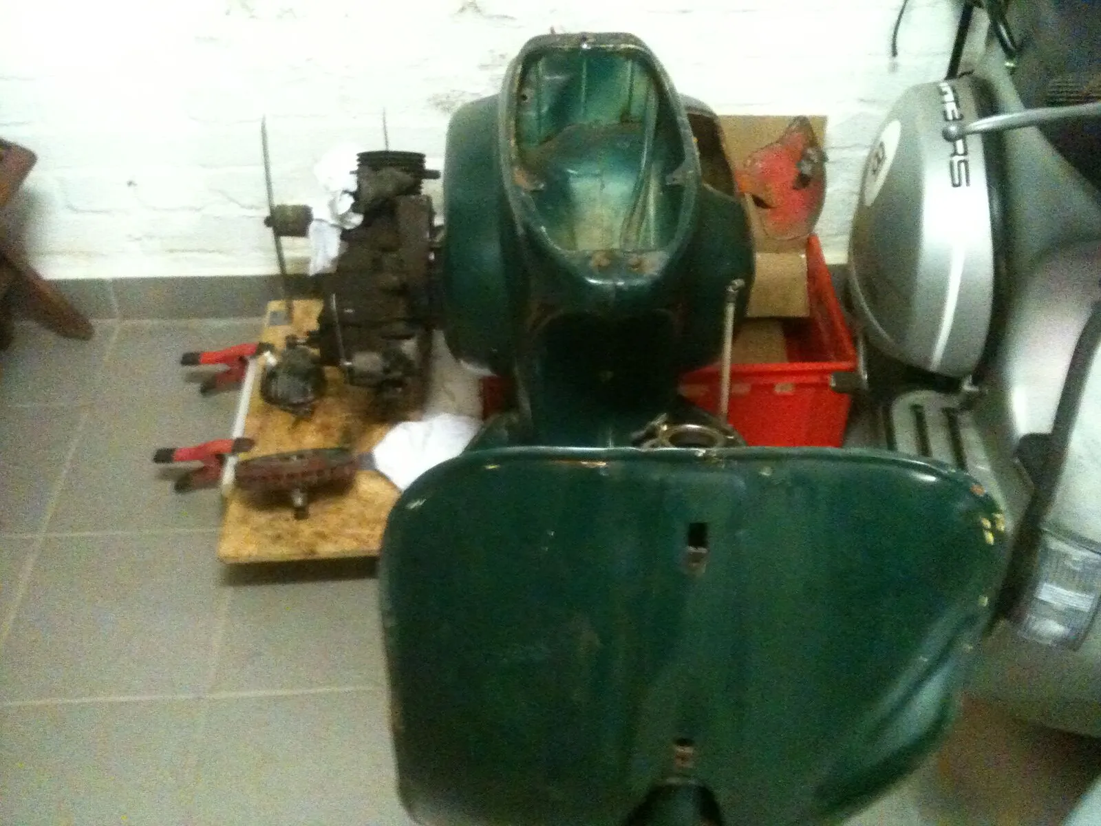 Der Winter steht vor der Tür und so wurde wieder Arbeit ins Haus geholt. Über den Umpfang der Arbeiten bin ich mir noch nicht sicher bzw. klar. Ggf. wird der Lack neu Aufgebaut oder nur überarbeitet. Im Trittblech ist ein Loch. Hier kann Entweder ein Stück eingeschweißt werden oder das Bodenblech muss kompl. neu - mal sehen. Der Motor bleibt zunächst wie er ist. Ist ausgestattet mit DR 85 und 19er Gaser. Auspuff ist noch Original, da wird bzw. muss wohl noch etwas passieren, jedoch weiß ich noch nicht wohin die Reise geht. Der Motor dreht, läuft jedoch nicht. Hier ist also auch nocht etwas zu tun.