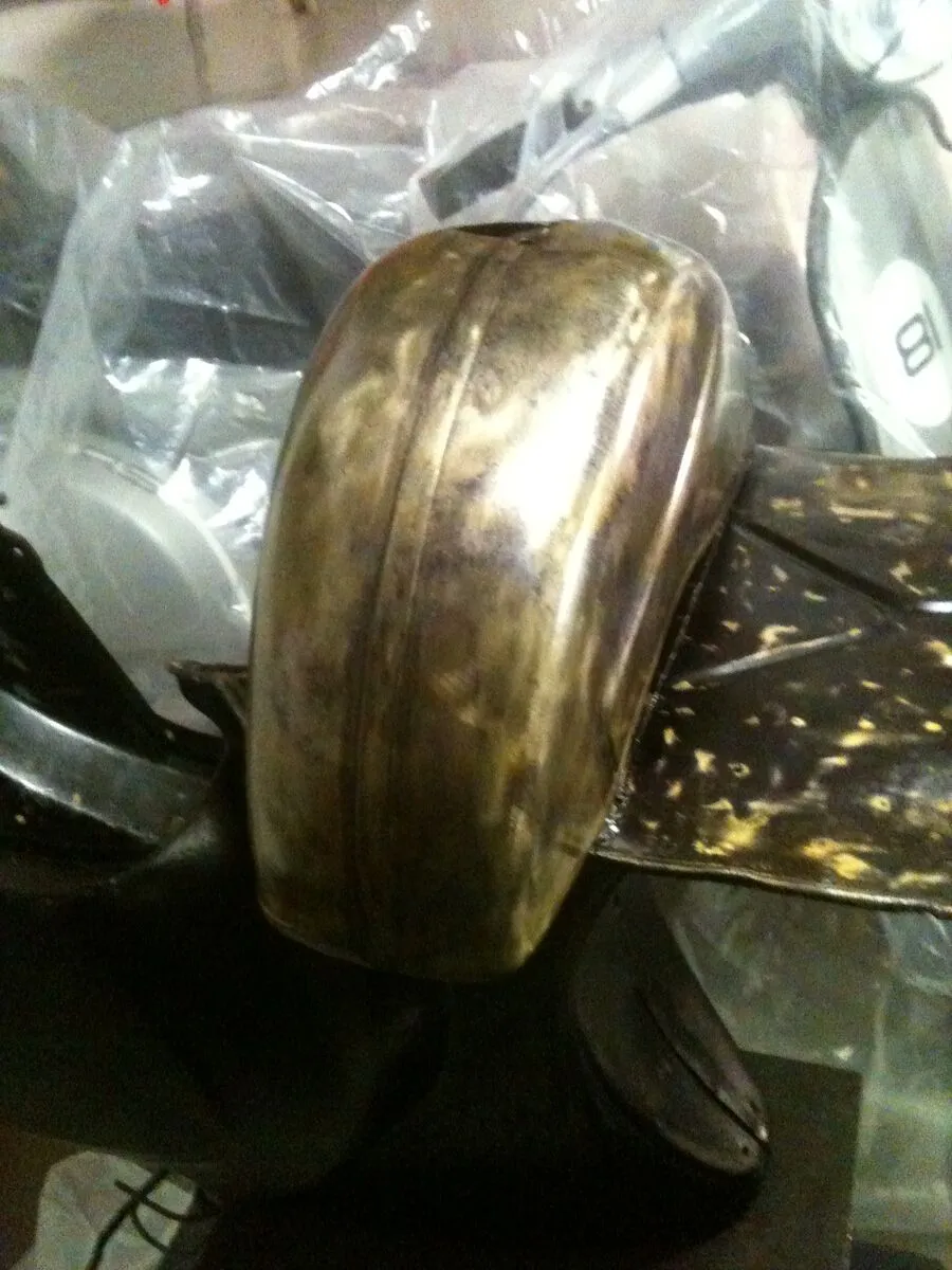 Das Kackfass ist nun komplett geschliefen, Koti und Lenkkopf auch wieder blank. Alles mit Fertan behandelt und der Lenkkopf ist bereits grundiert.