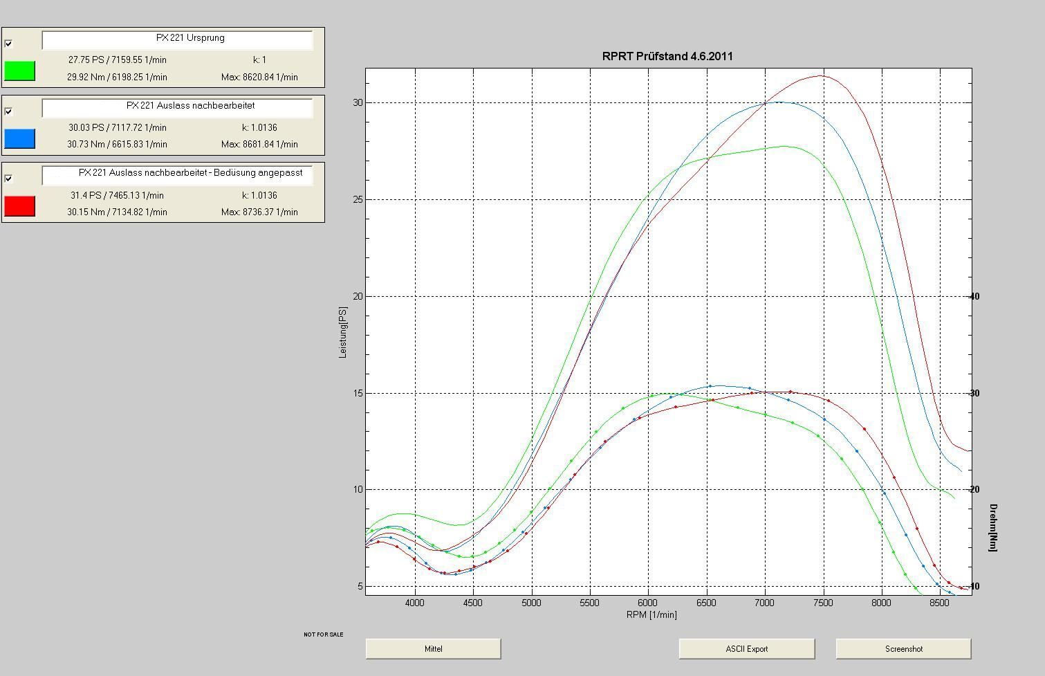 Ausgangskurve ist ein 221iger Malossimotor membran, blabla, Puff is'n Charger