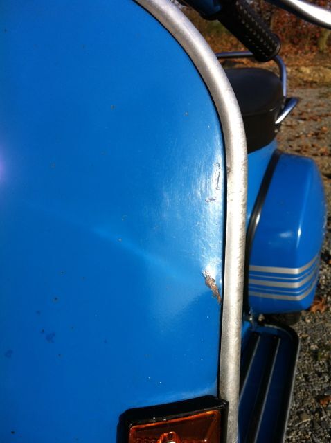 Aber was mache ich mit den Stellen die man sieht? Steinschläge am Schild, gang leichter Rost an der Naht hinten über der Lampe oder Steinschläge? Anschleifen, entrosten und dann.....