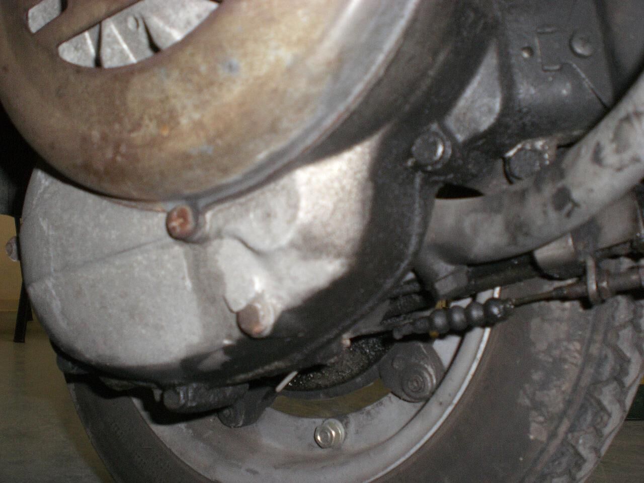 Der Motor ist verdreckt und zum Teil ölverschmiert.