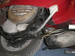 Der Motor ist verdreckt und zum Teil ölverschmiert.