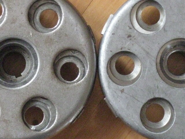 Da nehme ich den Kupplungskorb und lege die Druckplatte(da wo die Bronzebuchse drauf ist)rein ,aber irgendwie fluchten die Löcher vom Korb nicht mit den Vertiefungen für die Federn von der Druckplatte