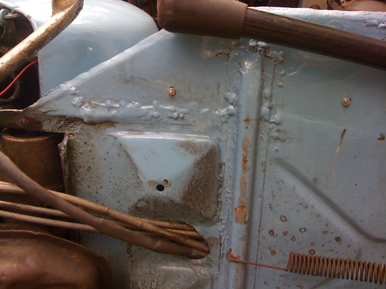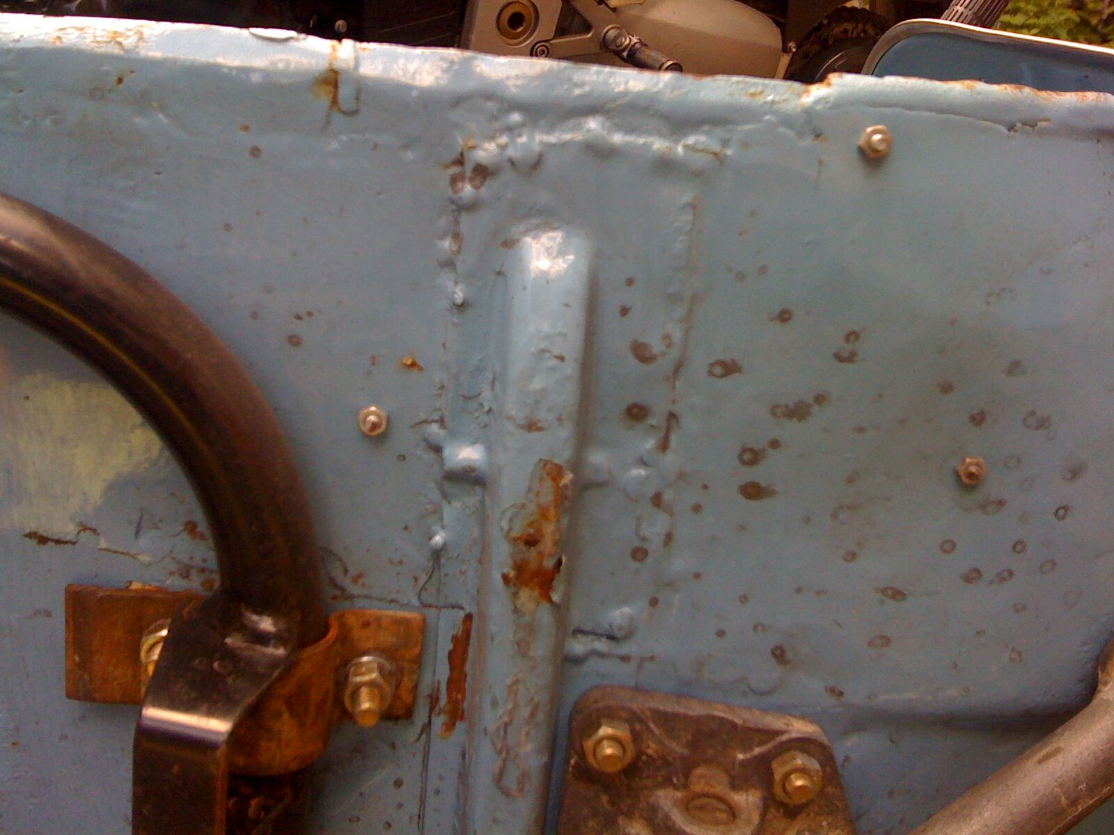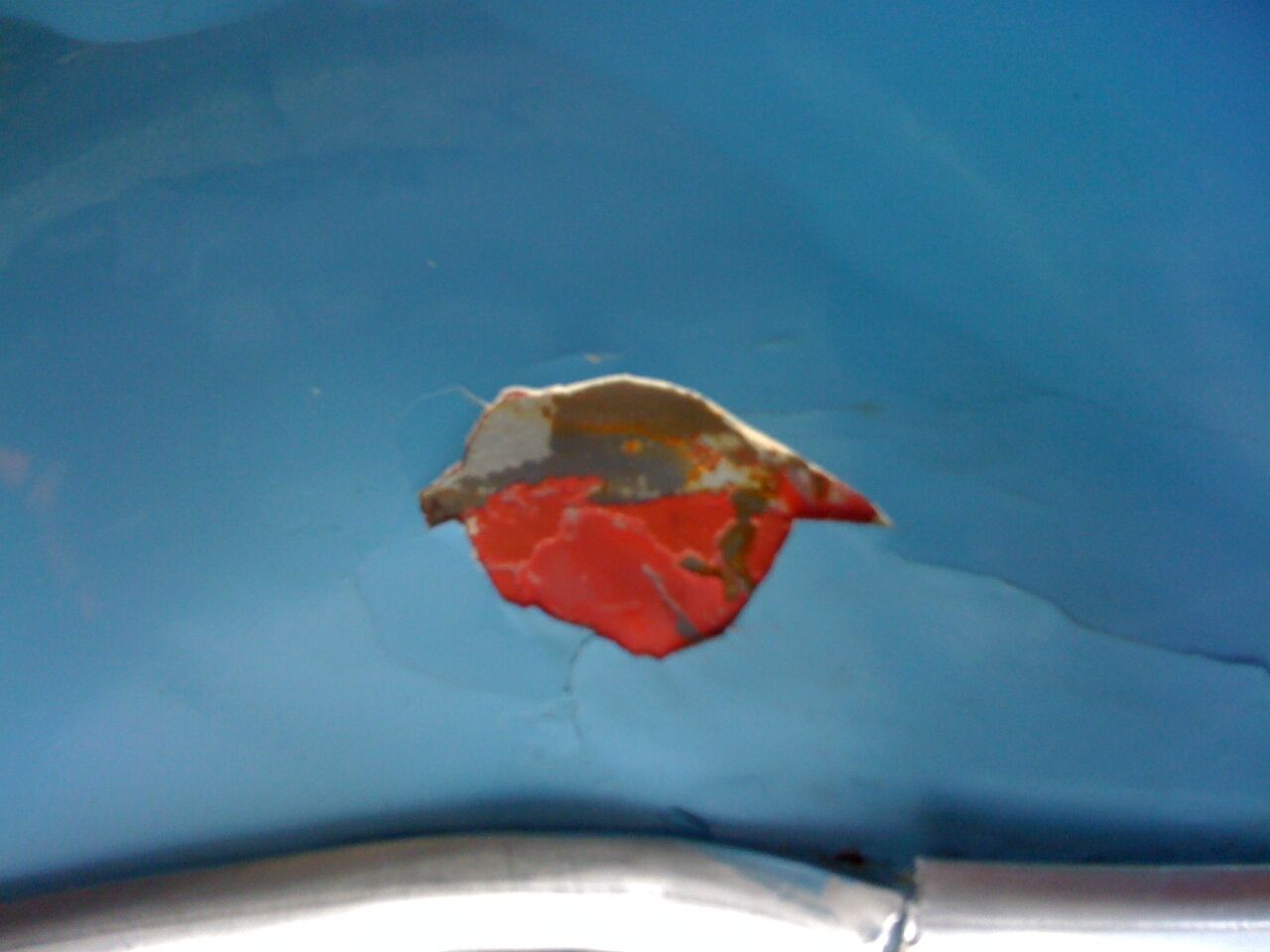 Ok, auf den Dreck dürft ihr nicht achten. Und dass die Farbe abblättert liegt an einer Delle von mir. Aber da ist es eher interessanter, was unter der Farbe so zum Vorschein kommt.