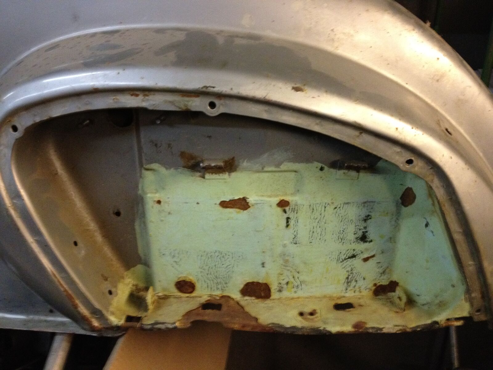 Bei erneuter Begutachtung ist dann heute die Entscheidung gefallen das Trittblech doch zu tauschen, weil einfach schon zu viel Gammel in die Traversen & Co gekrochen waren und das Trittblech selbst an 2-3 Stellen schon komplett durchgerostet war.